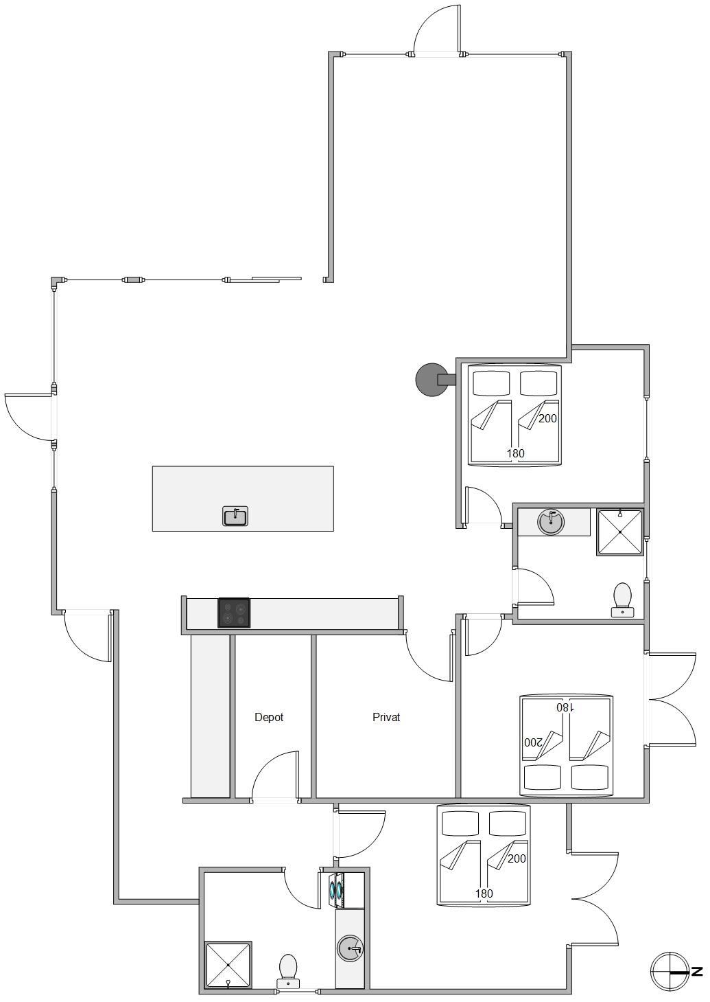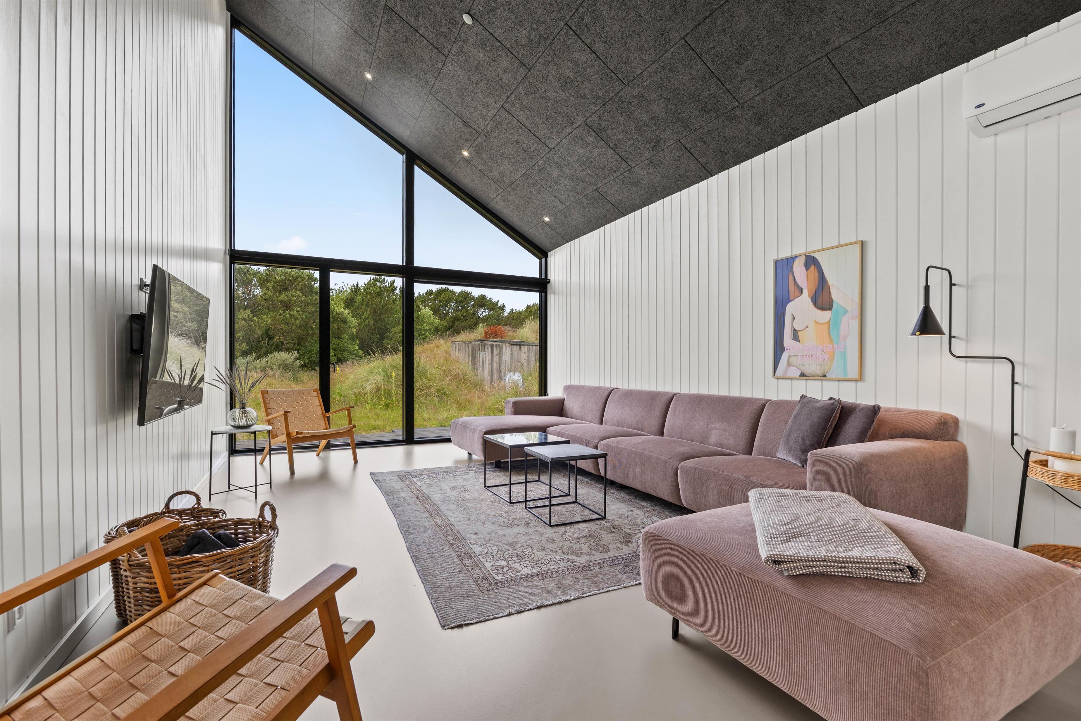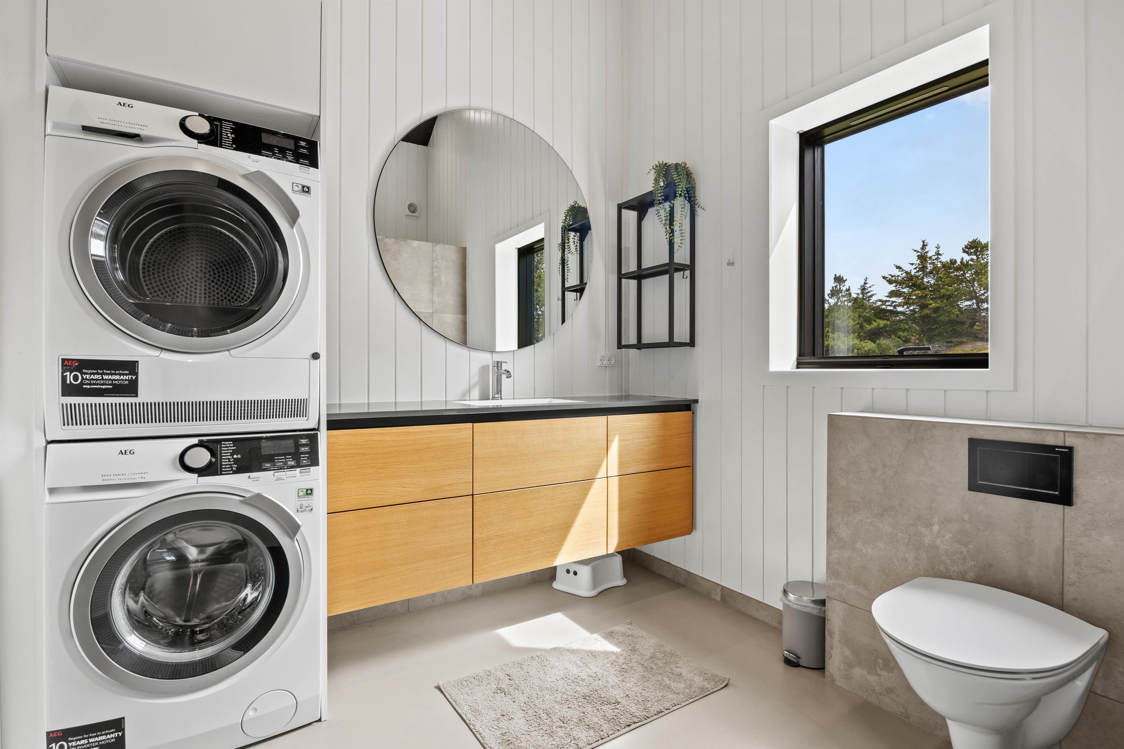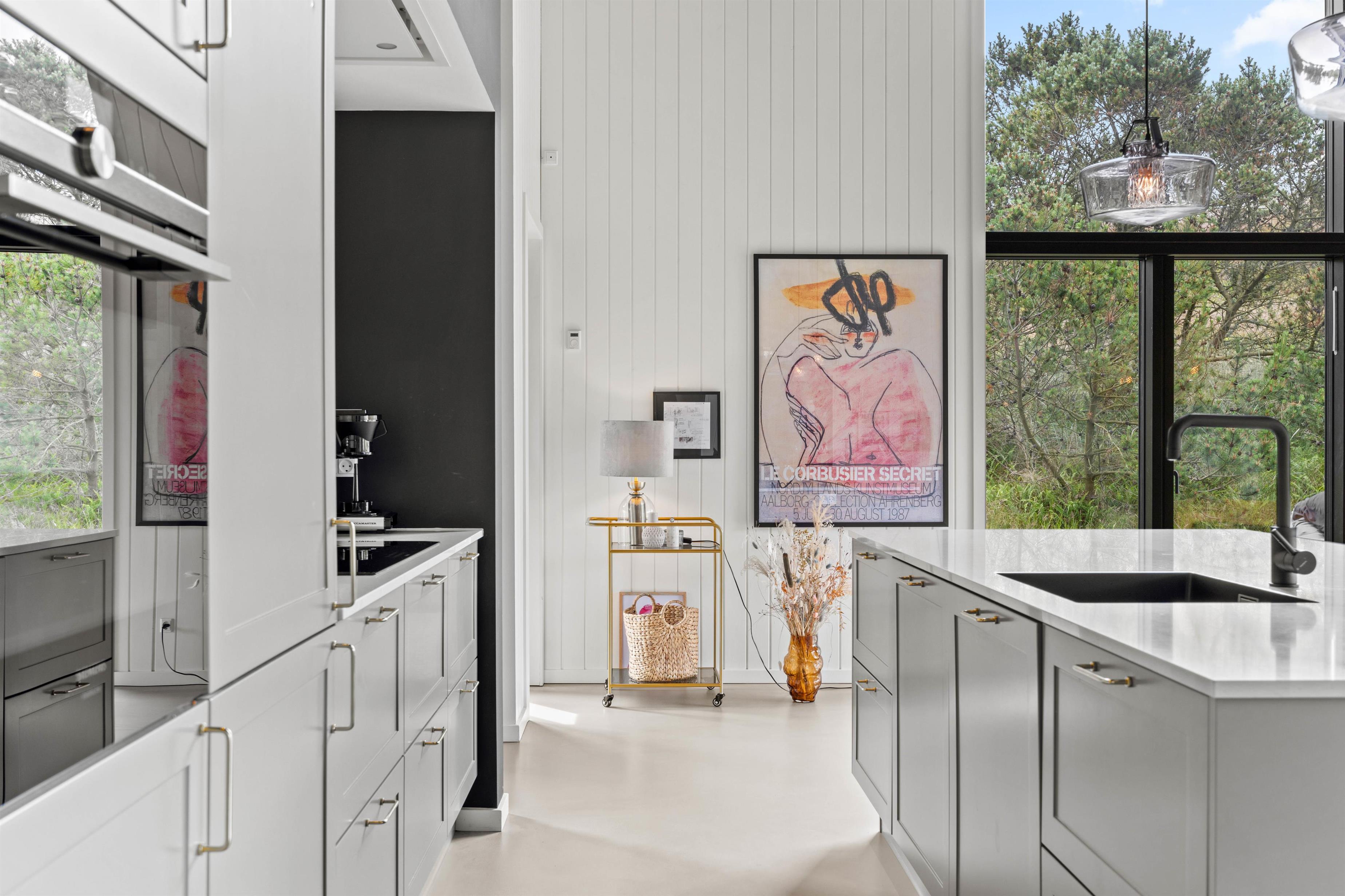 Det åbne plan med åbent opholds-spise-køkkenområde sætter fokus på samvær, og brændeovnen sætter prikken over i’et. Køkkenet indeholder alt, hvad I har brug for til et vellykket og godt måltid, herunder induktionskomfur, mikrobølgeovn og opvaskemaskine. Den energibesparende varmepumpe sikrer behagelige temperaturer i sommerhuset - hele året rundt.