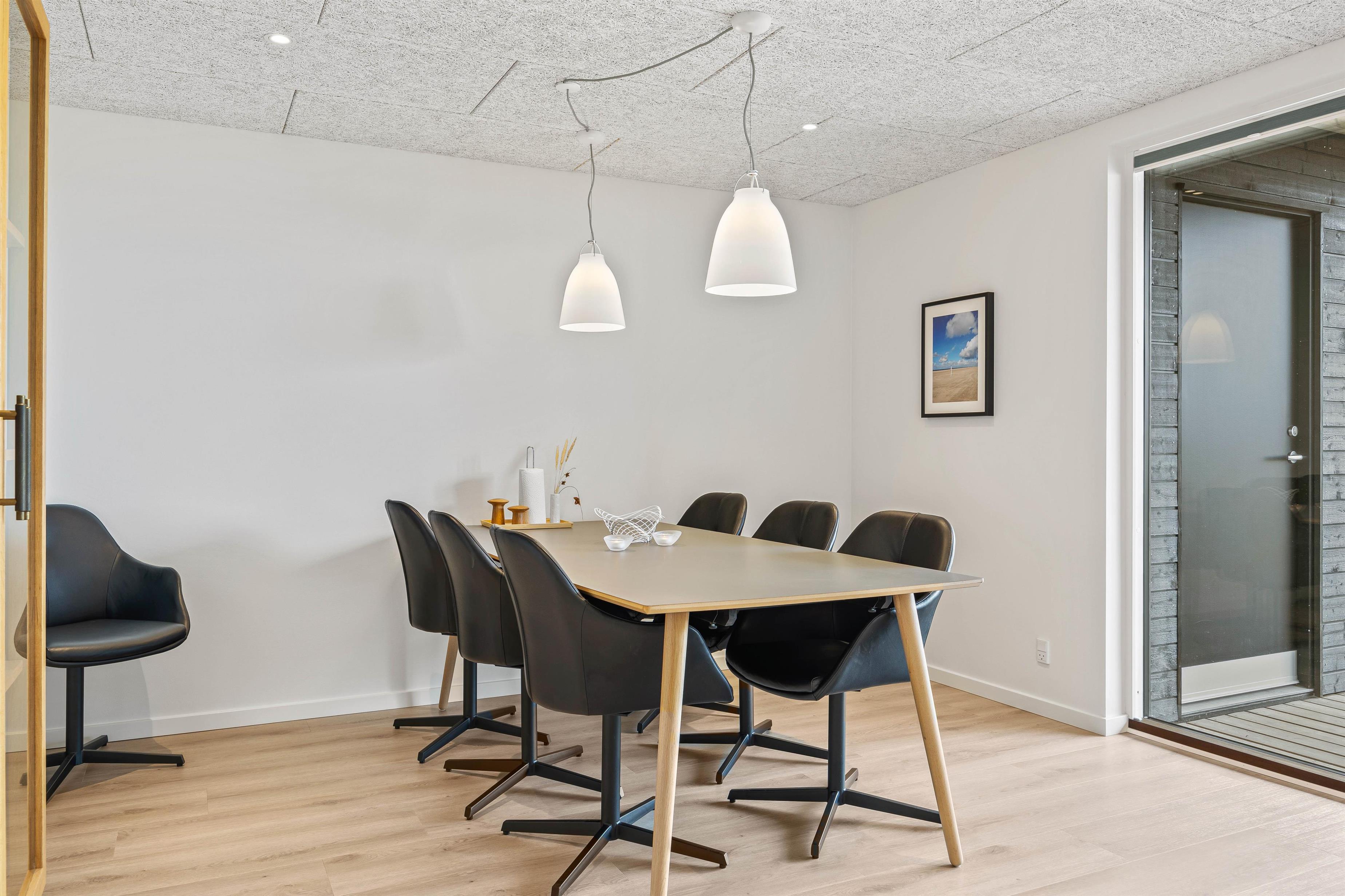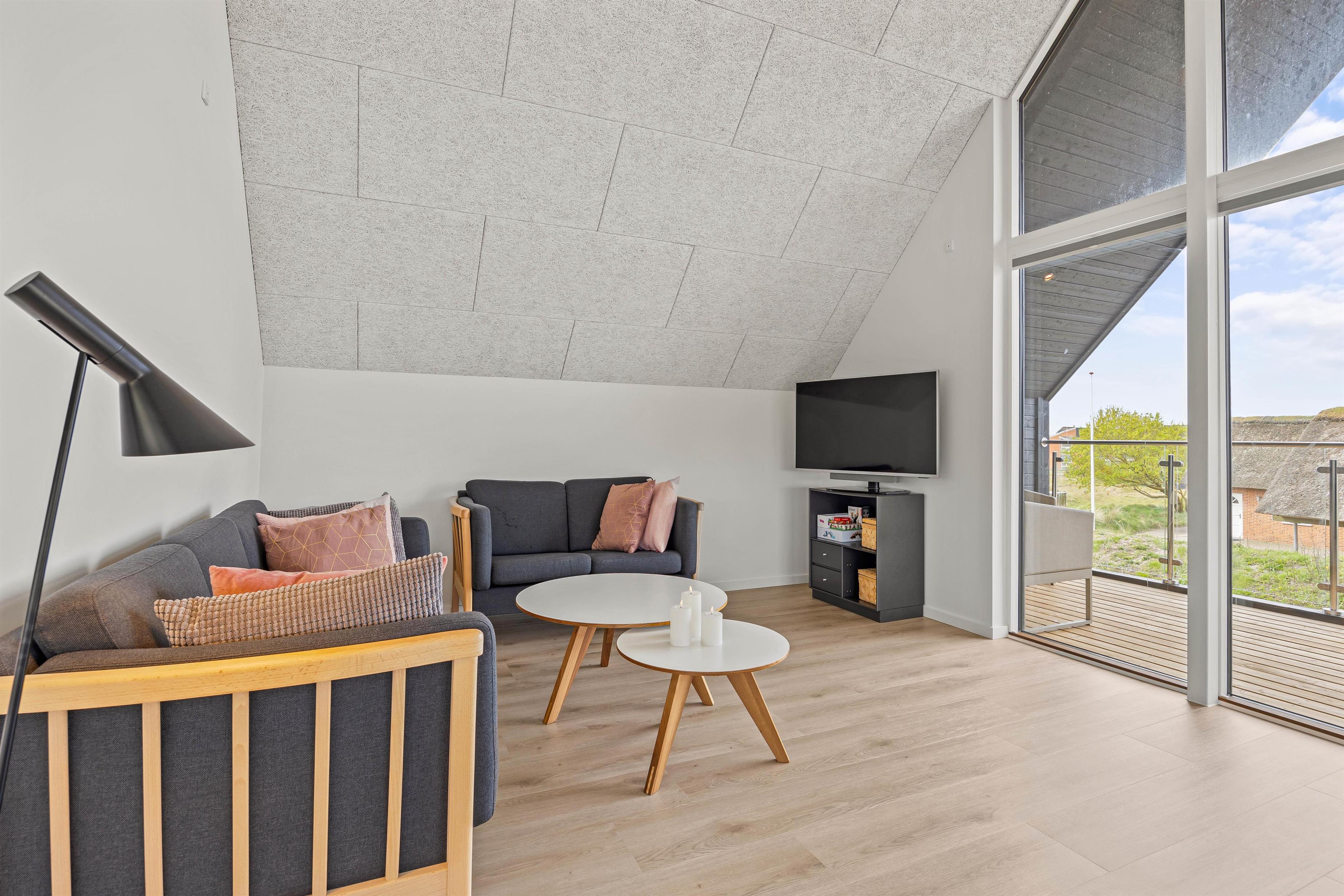 På første sal venter jer også feriehusets stue, hvor I kan slænge jer i sofaen med en god film på TV. Stuen har et fantastisk lysindfald fra de store vinduespartier ud til den vestvendte balkon, der er indrettet med loungemøbler. Her kan I læne jer tilbage og se, hvordan solnedgangen farver himlen i de smukkeste pastelfarver og lytte til lyden af bølgernes brusen. Alternativt kan I gå ned til stranden, der blot ligger 300 meter fra feriehuset, og slå jer ned på et tæppe. Herfra er udsigten til solnedgangen spektakulær, når solen langsomt dykker under havets overflade.