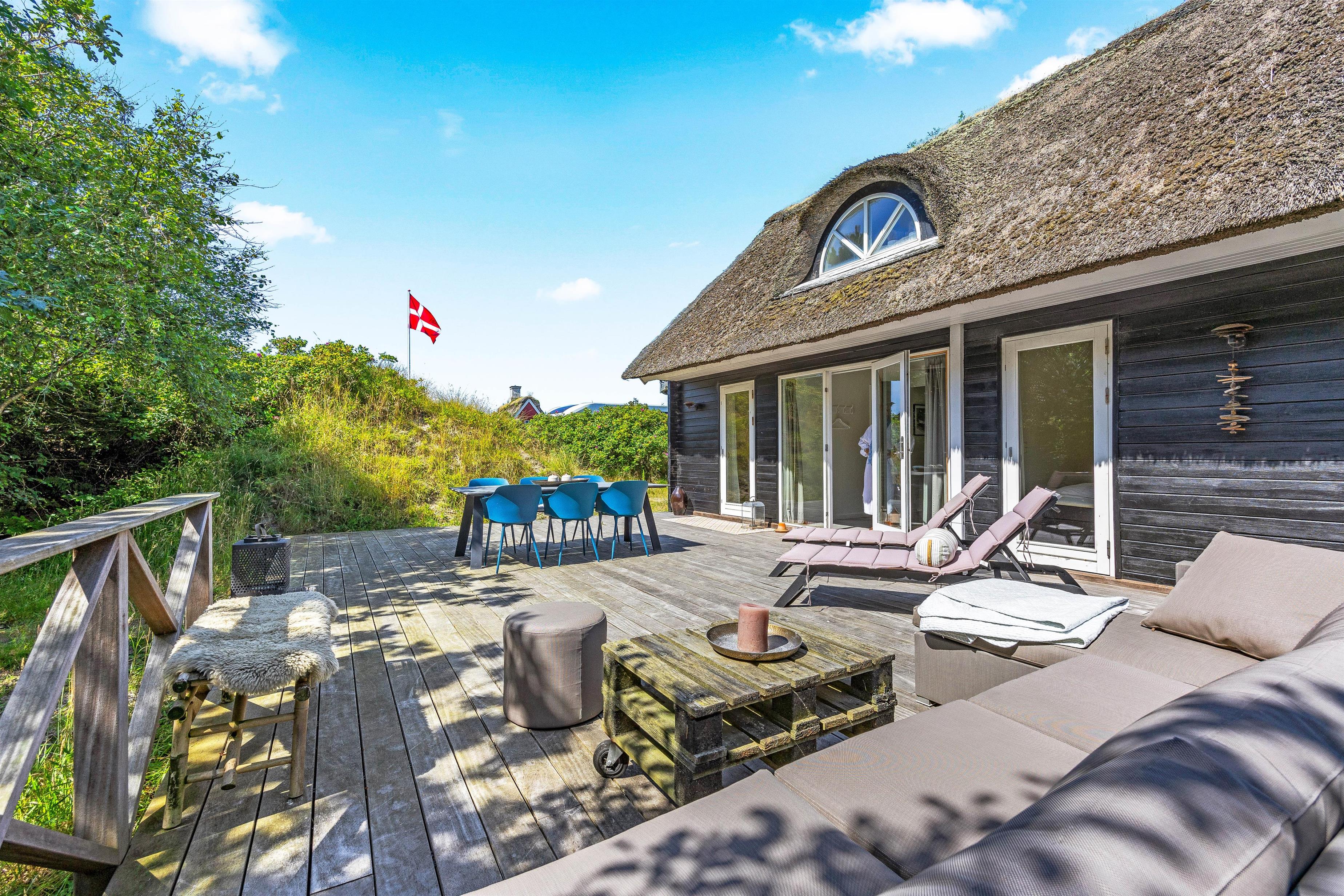 Nær Fanø Bad finder I dette hyggelige, stråtækte sommerhus. Sommerhuset kombinerer komfort og bekvemmelighed, så I kan holde en dejlig ferie på vestkysten. Strandvejen 38 ligger på en smuk, afskærmet klitgrund, og herfra er der ikke langt til det brusende Vesterhav.