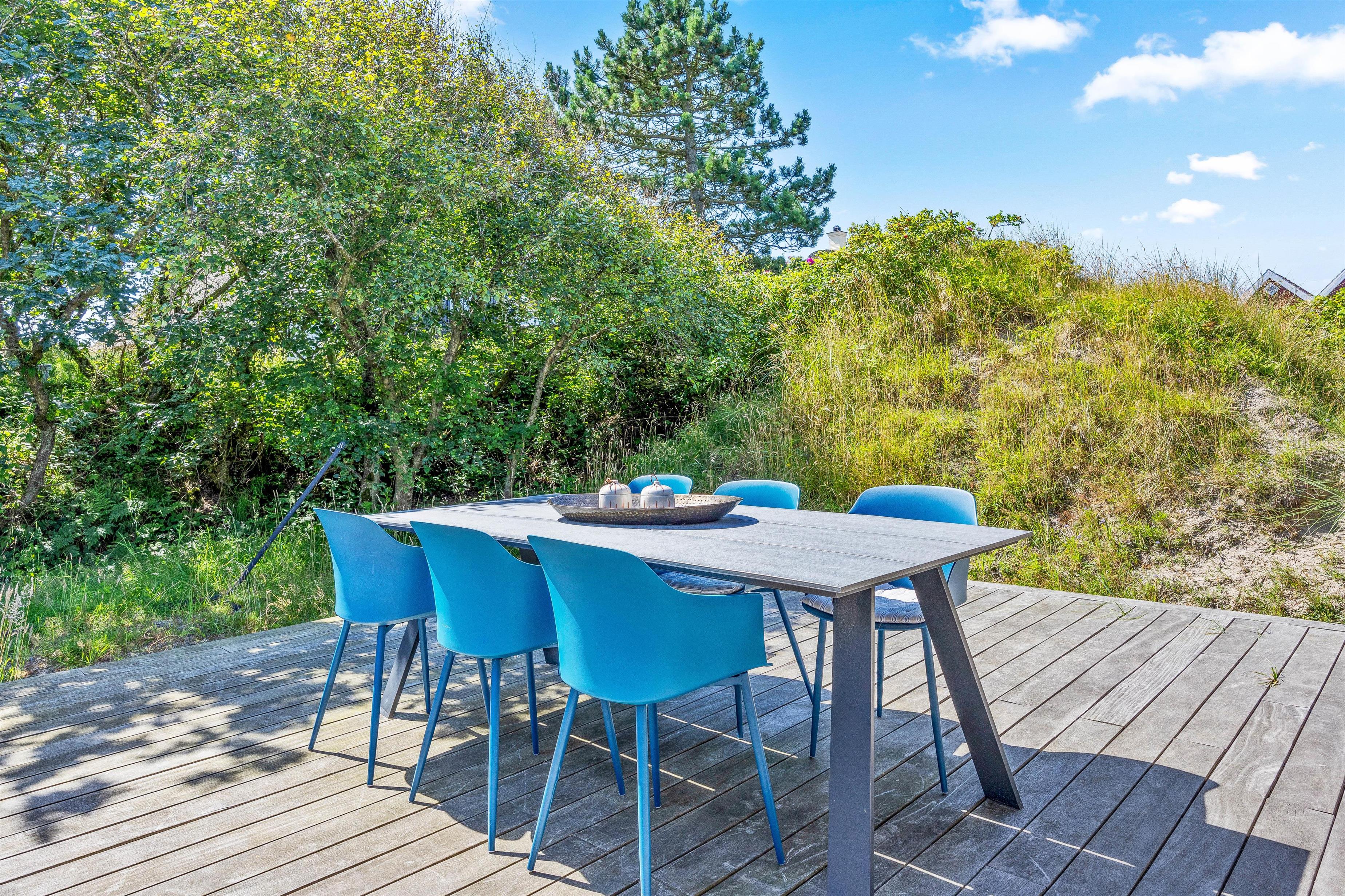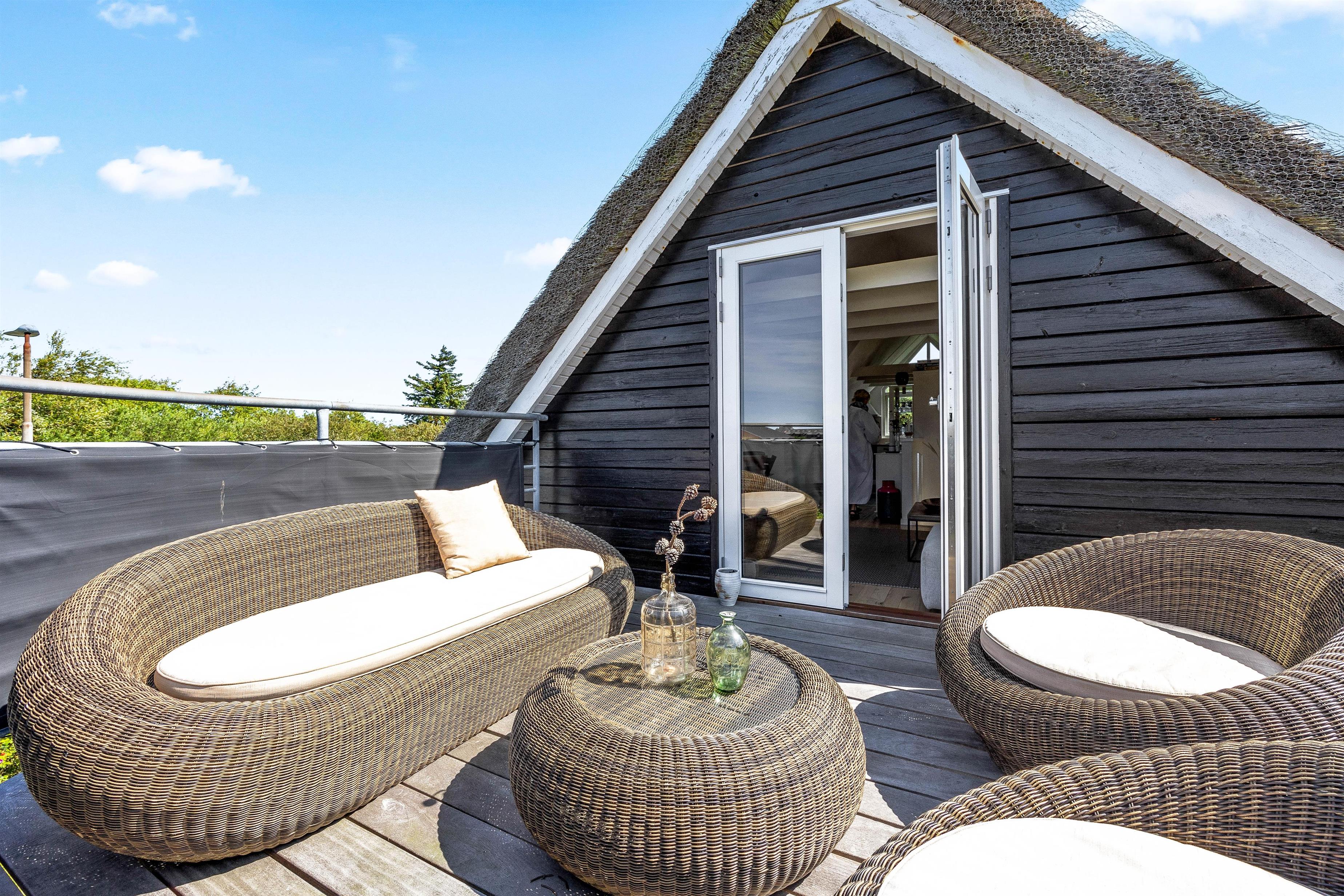 På de varme dage har I mulighed for at rykke udenfor og nyde den skønne træterrasse. Her står havemøblerne allerede klar til jer. Nyd de solrige morgener med en kop nybrygget kaffe og lyden af bølgerne i baggrunden eller tilbring rolige aftener med grillmad og gode samtaler under stjernerne. Grunden er fint afskærmet af de store træer, der skaber læ og privatliv.