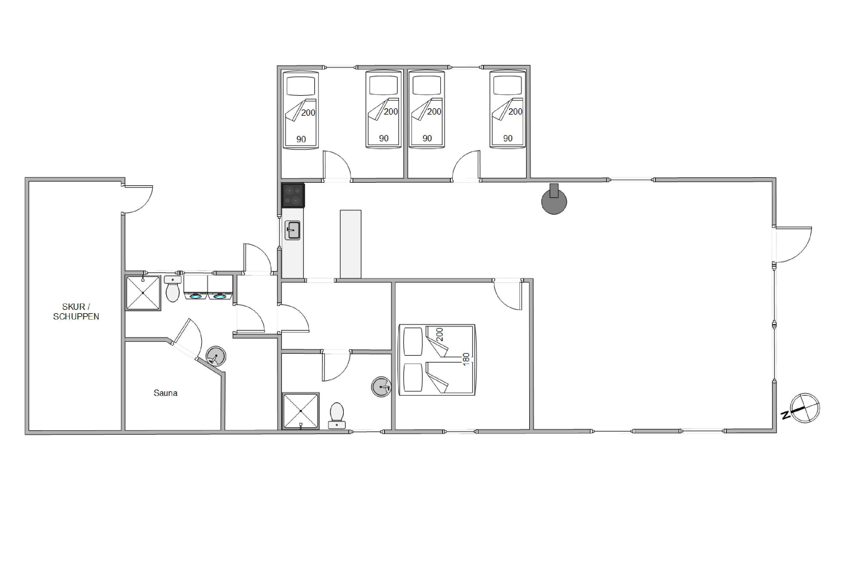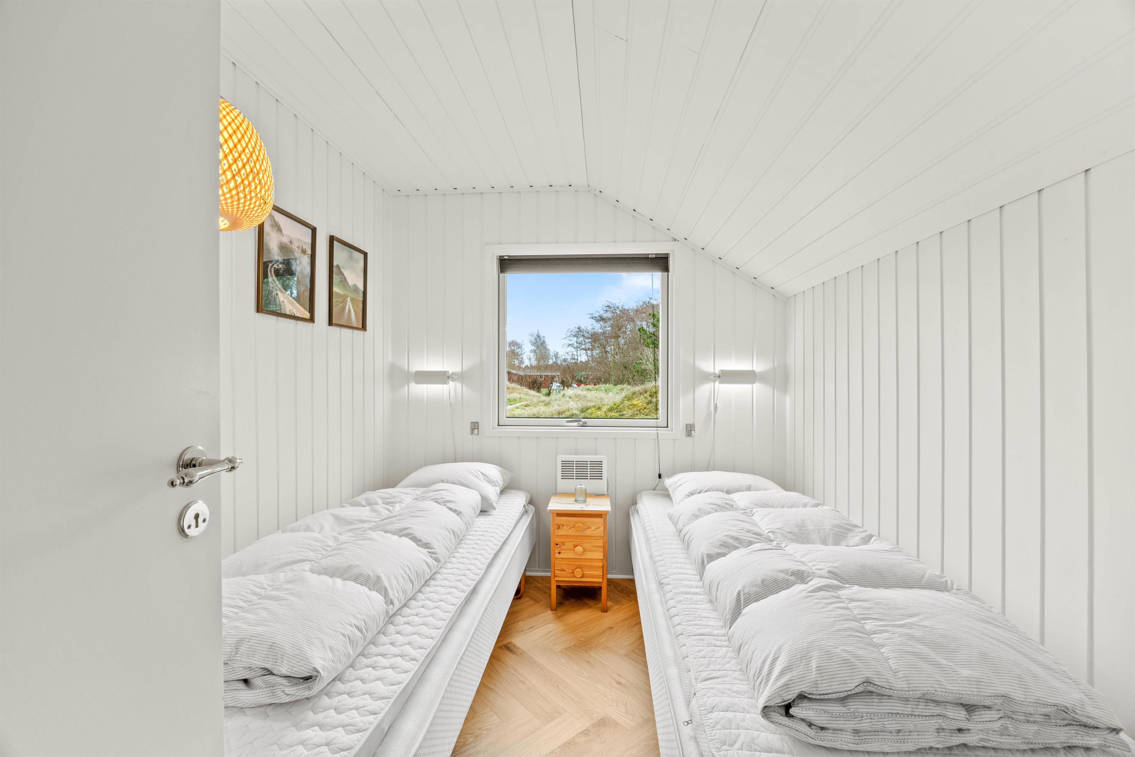 I det åbne og praktiske køkken, der støder direkte op til opholds- og spiseområdet, finder du alt, hvad du skal bruge for at fremtrylle et vellykket måltid, herunder induktionskomfur og opvaskemaskine. Der er 3 soveværelser i sommerhuset, hvor I kan fordele jer og få en god nattesøvn i den friske vesterhavsluft.