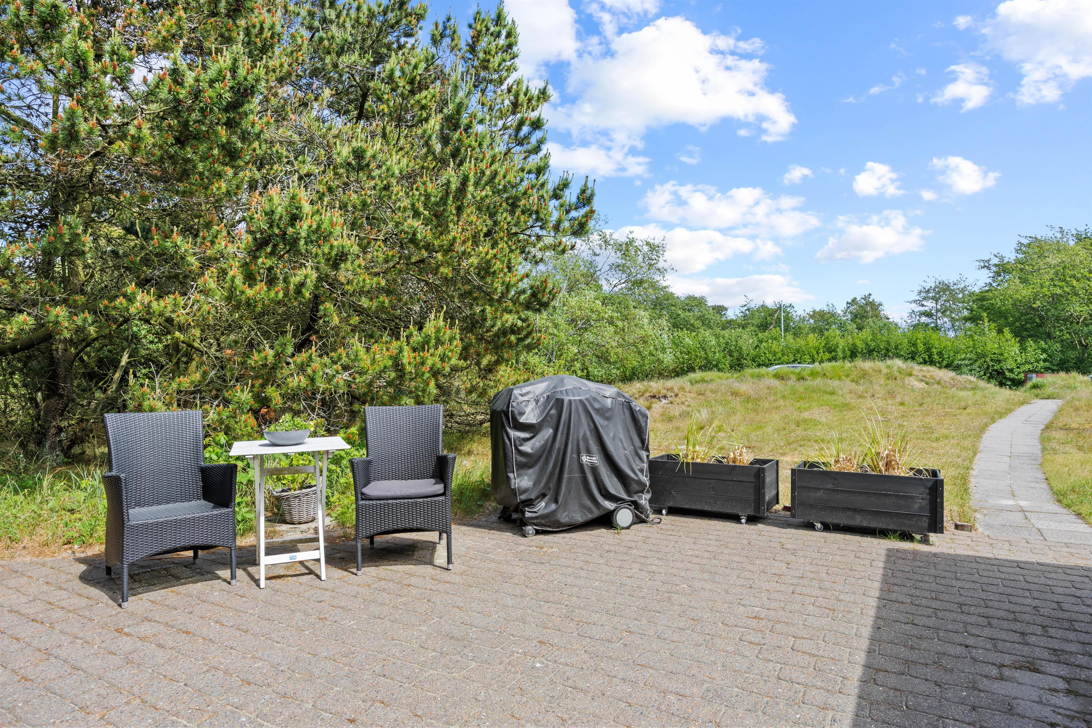 Den smukke terrasse har både et afskærmet og et overdækket område, så du altid kan nyde udelivet. Tag solbad i liggestolene eller slap af i havemøblerne. Du kan tilberede aftensmaden på terrassen, hvor der er en grill til rådighed. Hvis du ikke har købt noget til den perfekte grillaften, så fortvivl ikke - den nærmeste butik ligger kun 600 meter væk.