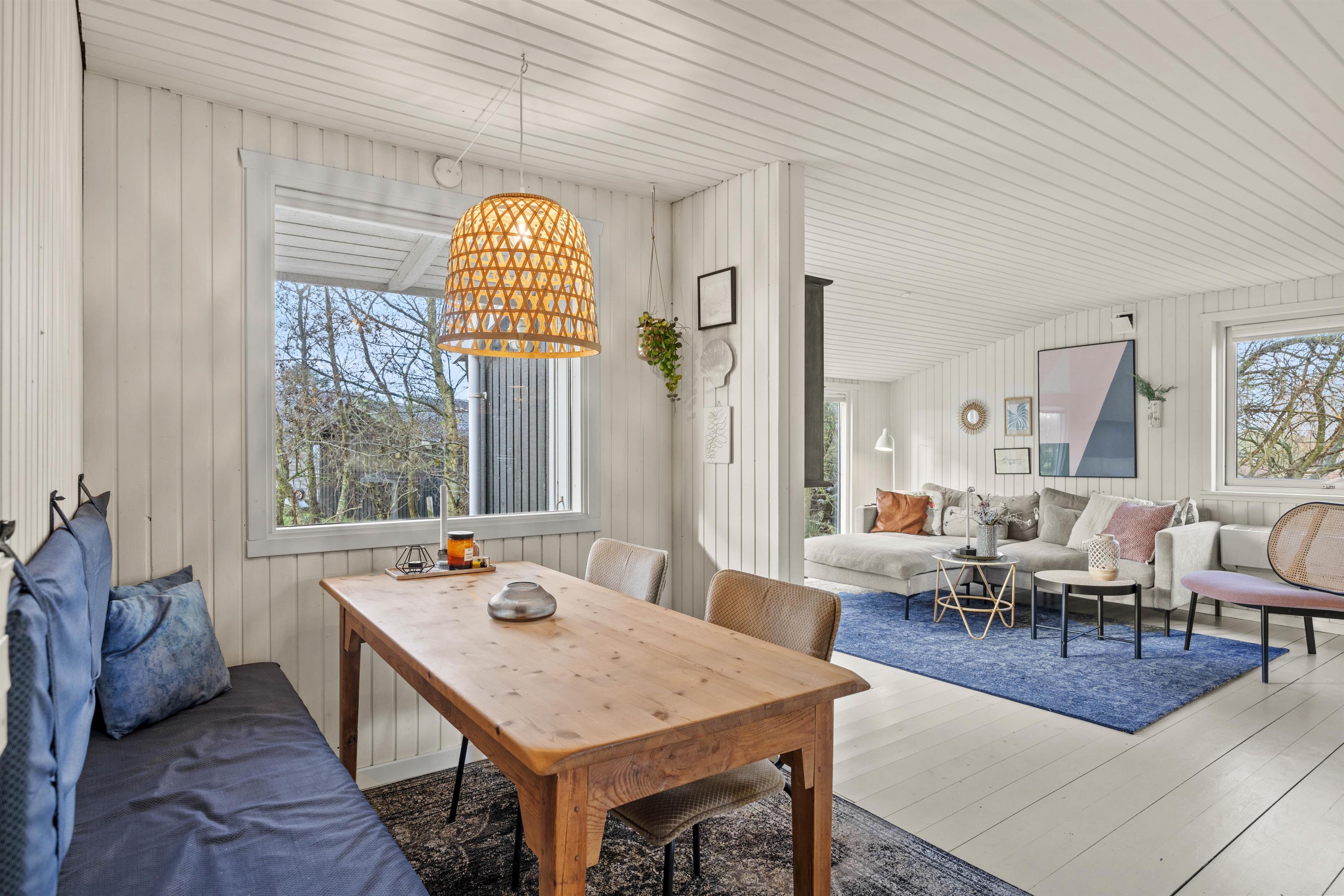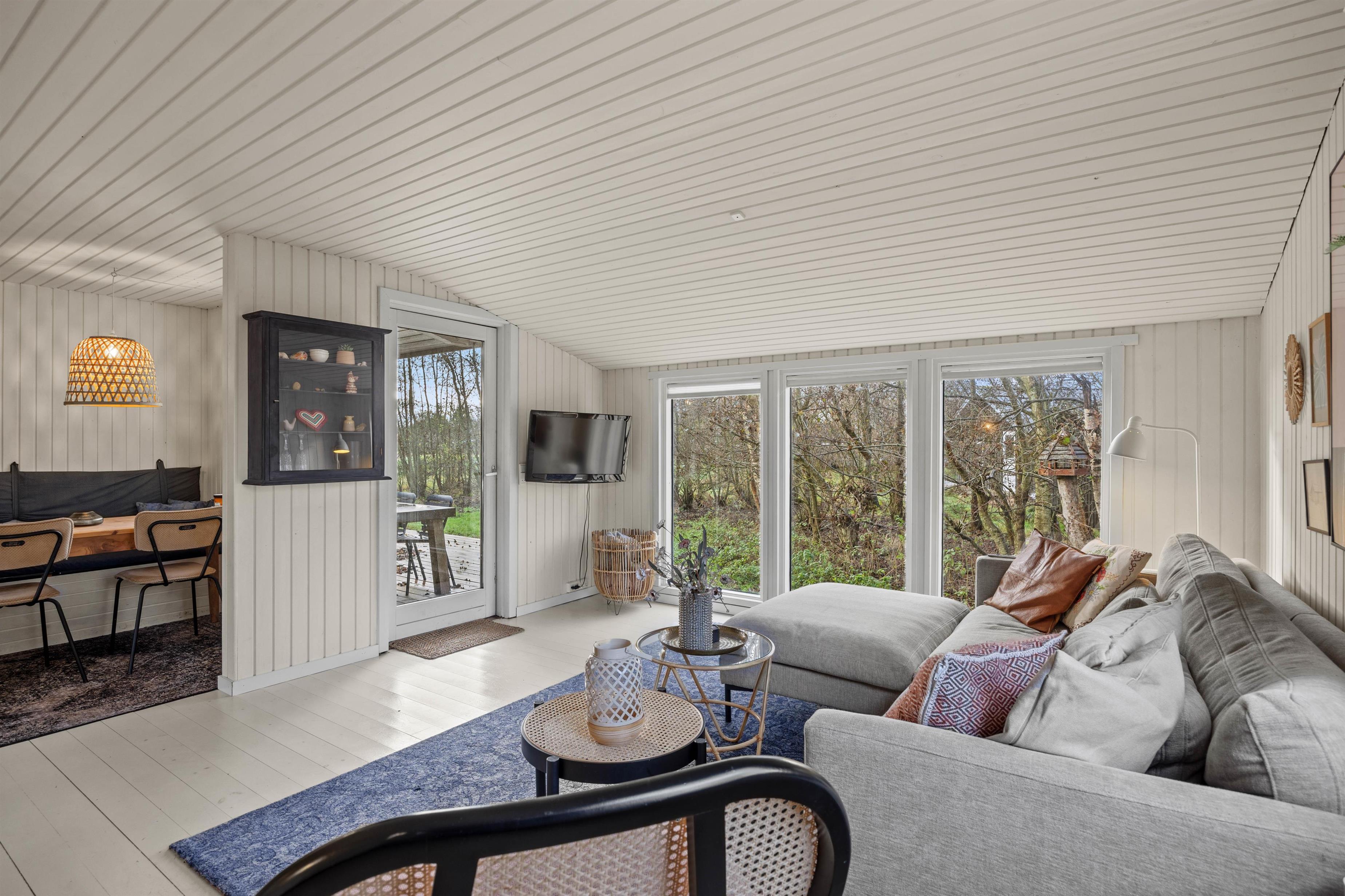 Sommerhuset på Kallesbjergvej 72 byder på et indbydende køkken- og opholdsområde, som rummer plads til hele familien. Den åbne planløsning gør det muligt at deltage i familielivet, selv mens der laves mad. Sæt jer derefter til rette foran den hyggelige brændeovn, leg med børnene eller nyd den lyse og venlige atmosfære, som de store vinduespartier skaber.