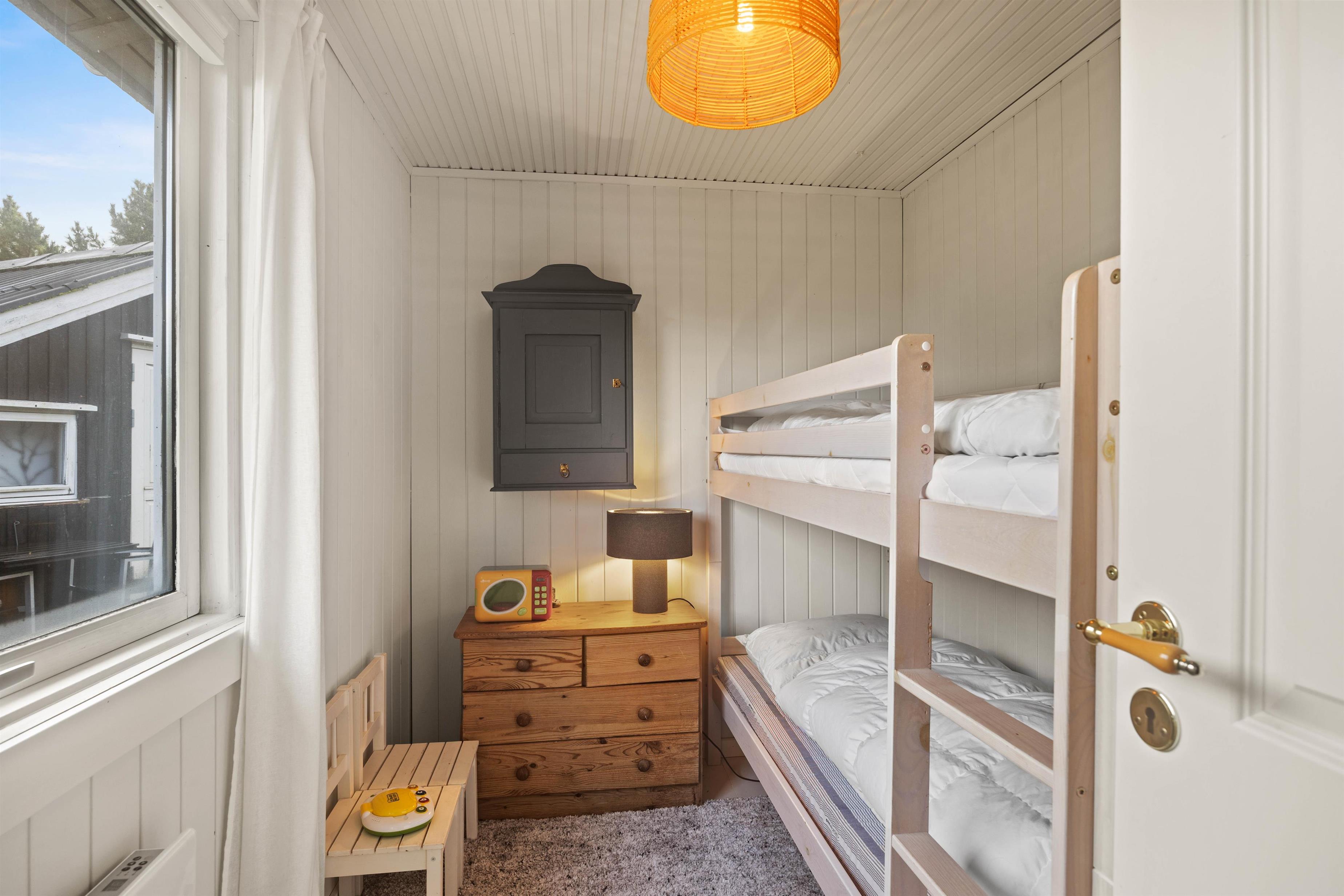 Sommerhuset har 3 hyggelige soveværelser, der giver ro til en god nats søvn. Børnene vil elske soveværelset med køjesengen. Det lyse badeværelse har behagelig gulvvarme, der giver varme og får kolde fødder til at forsvinde. Efter en lang dag på stranden kan I slappe af i feriehusets sauna.