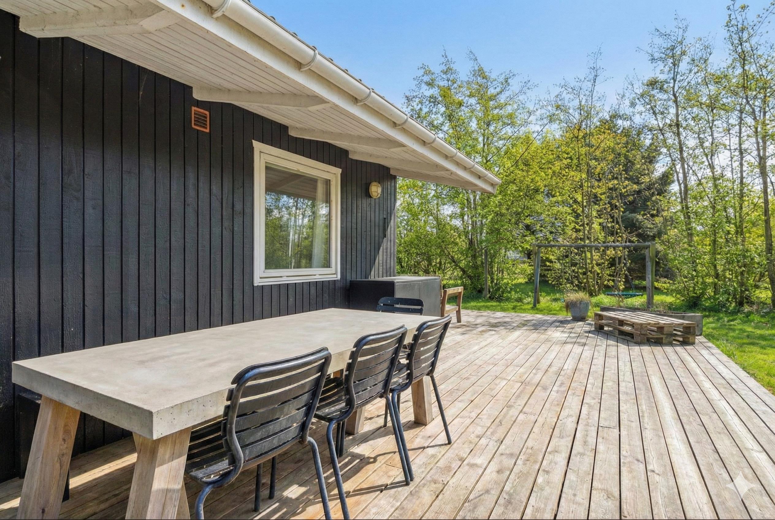 Den rummelige grund giver børnene perfekte muligheder for at lege og boltre sig hele dagen. Mens børnene gynger, leger i sandkassen eller udforsker det grønne område, kan I slappe af på terrassen, nyde den friske luft og lade sjælen hvile. Om aftenen kan I tænde op i grillen på terrassen og nyde roen og den friske luft.