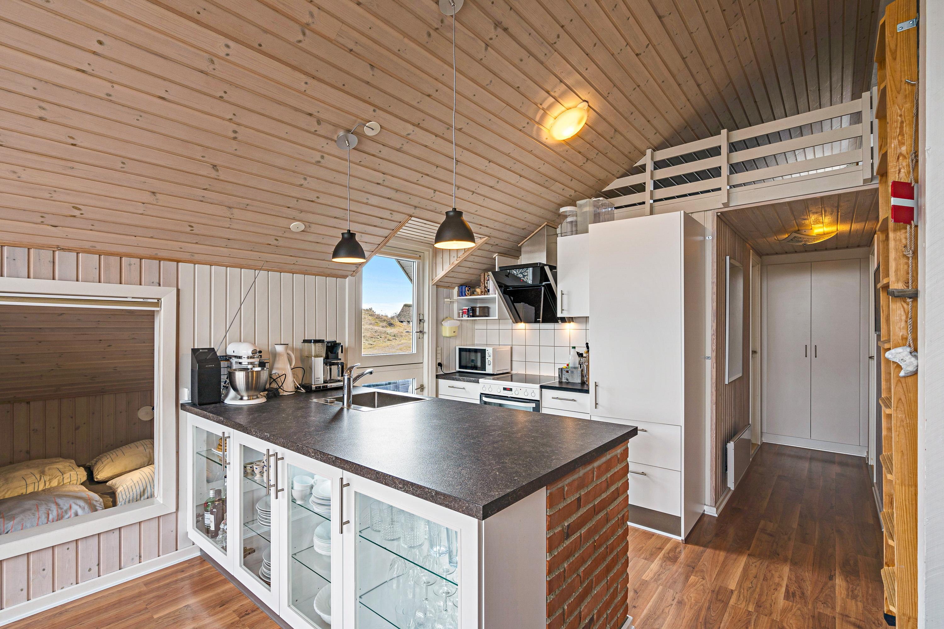 Det velholdte sommerhus er indrettet således, at hele familien kan tilbringe tid sammen, også selvom I foretager jer noget forskelligt. Det rummelige opholdsrum indeholder stue, spiseplads og et veludstyret køkken og er indrettet med komfortable møbler. Her er der også bygget en lille alkove, som er det perfekte tilflugtssted for børn, hvor de kan lege, læse eller slappe af, mens maden tilberedes.