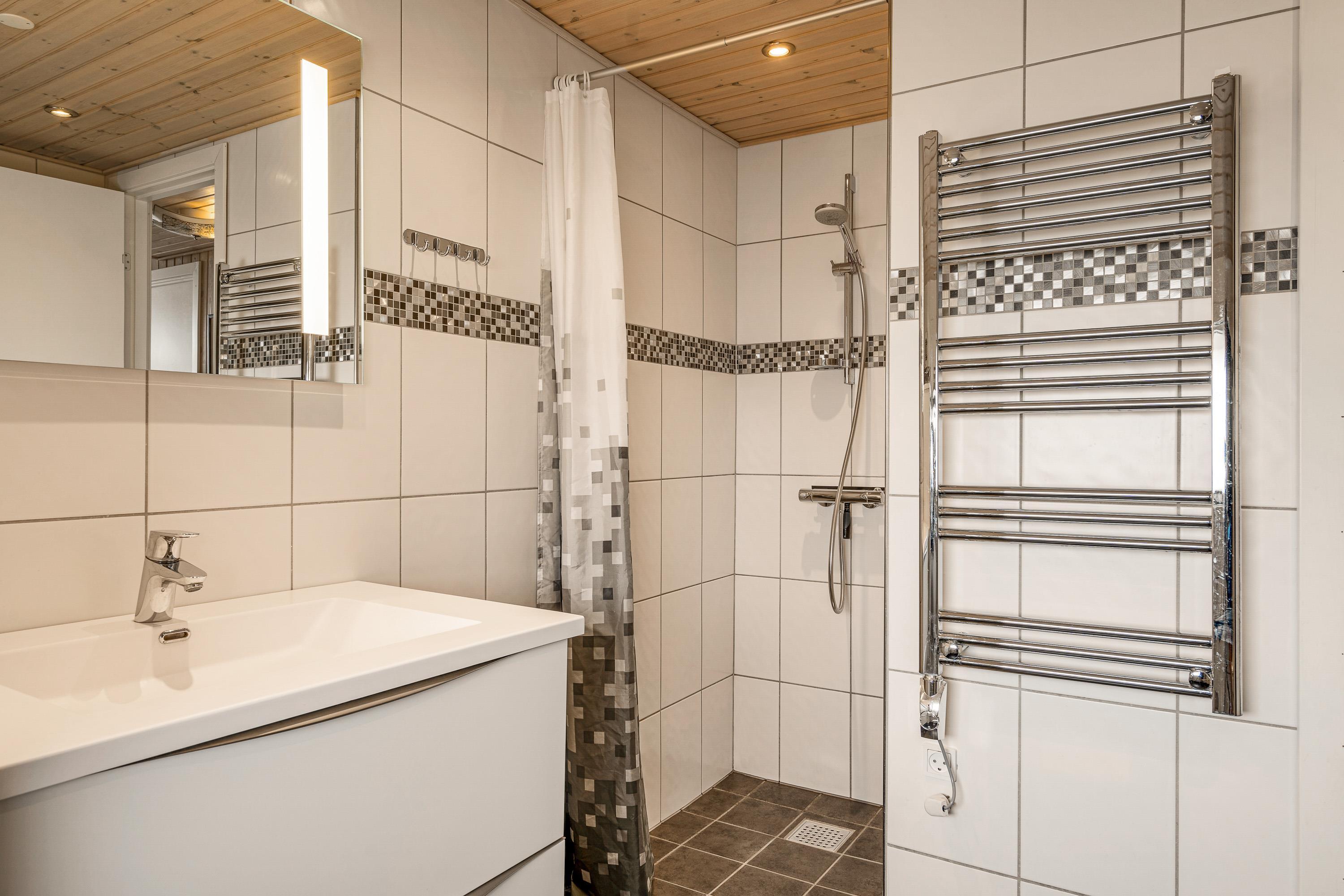 Åbent opholdsrum med plads til hele familien - badeværelse med sauna