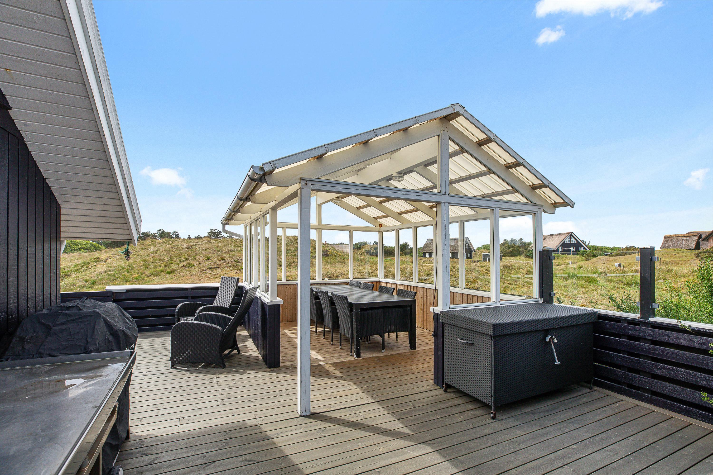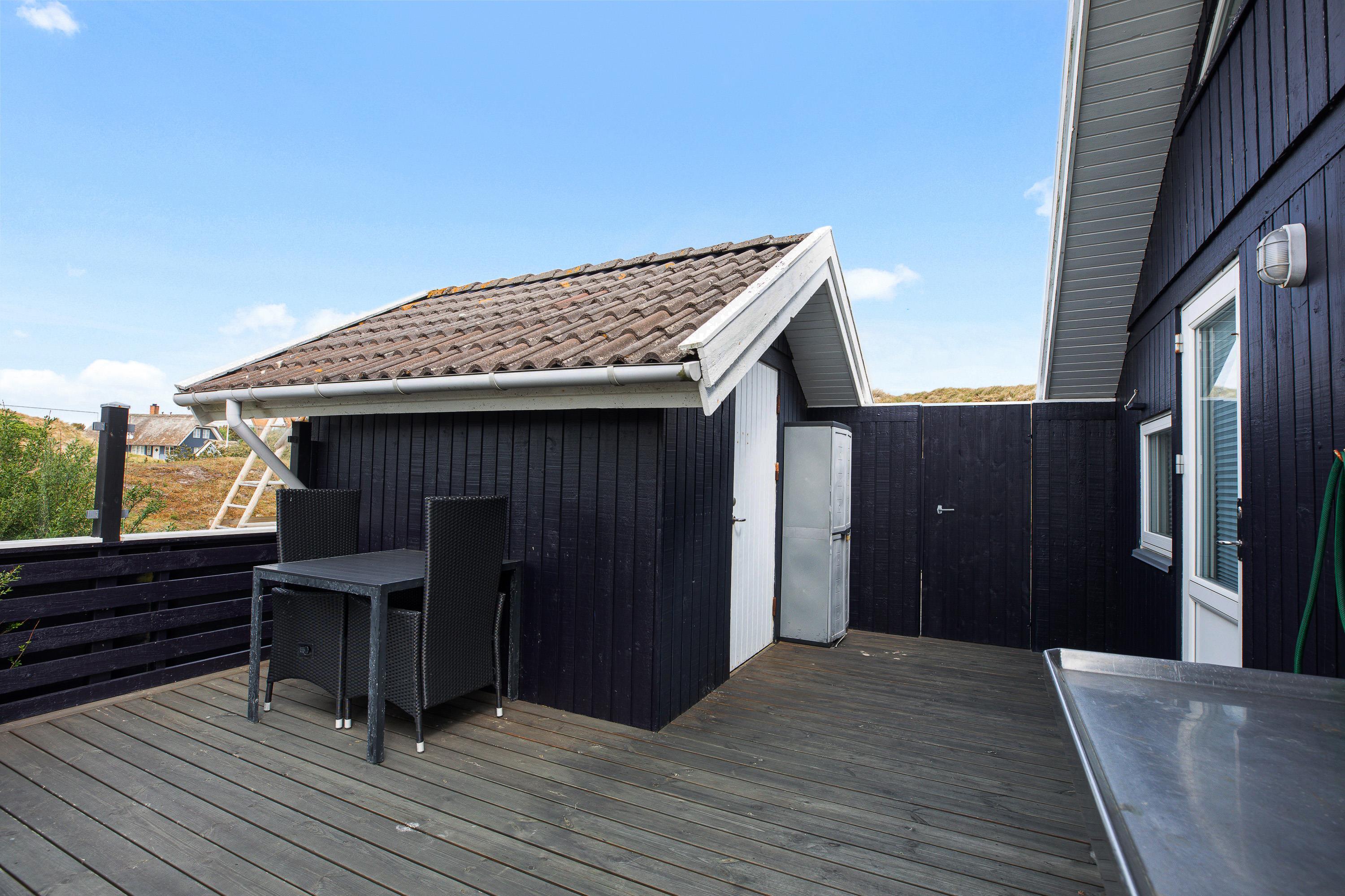 Udover et fantastisk feriehus får I her et helt særligt udemiljø. Feriehuset på Nørre Meldbjergdal 11 ligger ugeneret og smukt indlejret i de grønne klitter, hvilket giver jer ekstra privatliv. Rundt om feriehuset er der indrettet flere små terrasseområder, så I altid vil kunne finde en solrig eller skyggefuld plet.