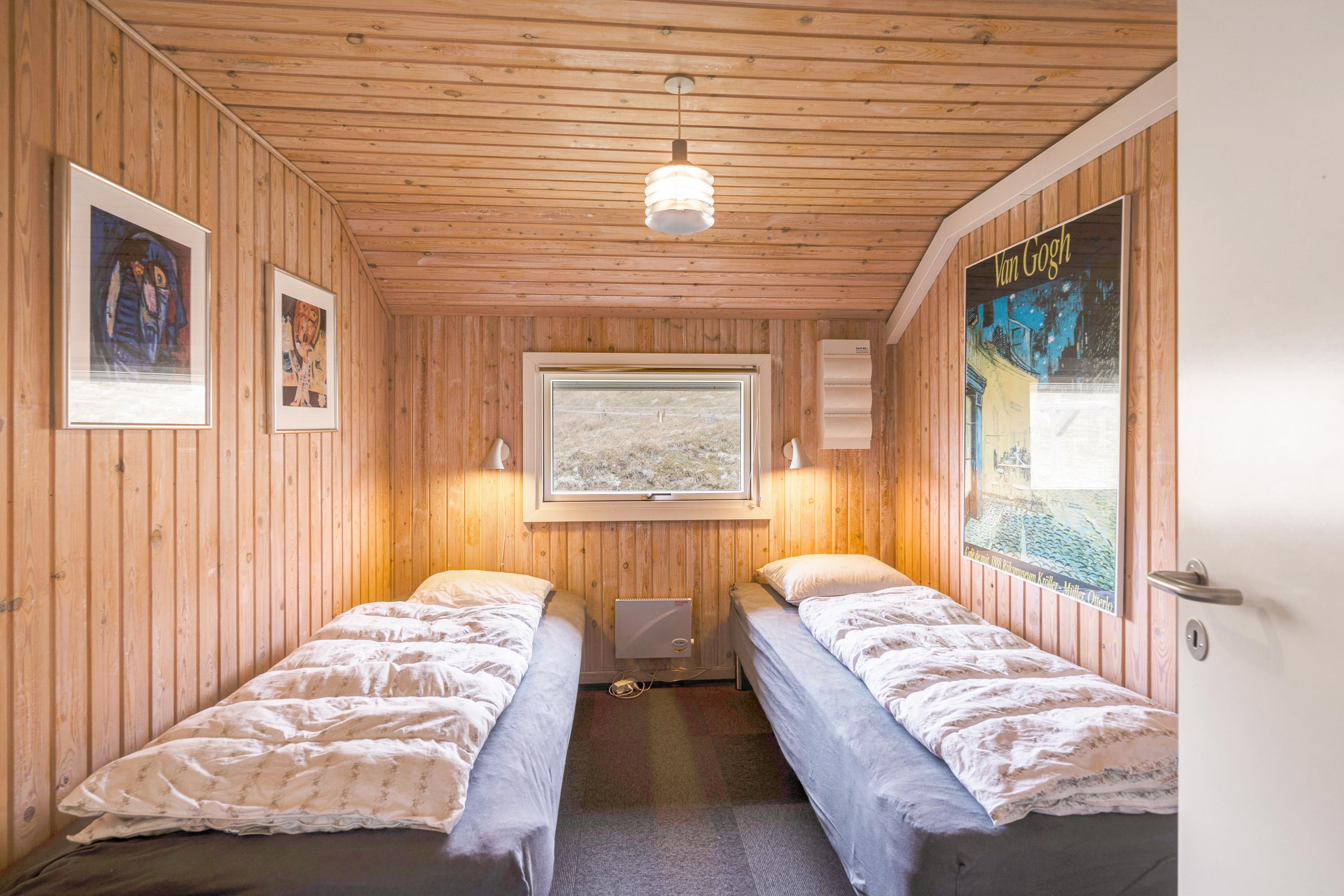 Feriehuset råder over 2 soverum, hvoraf det ene er indrettet med 2 stk. 90x200cm enkeltsenge. Det store soveværelse indeholder 2 stk. sammensatte 90x200cm elevationssenge. Her kan I lægge jer tilrette med en god bog inden sengetid og koble af efter feriedagen med sjove aktiviteter. Badeværelset er med gulvvarme og indeholder en kombineret vaskemaskine og tørretumbler samt en lækker sauna, hvor I rigtigt kan læne jer tilbage og slappe af i krop og sjæl.