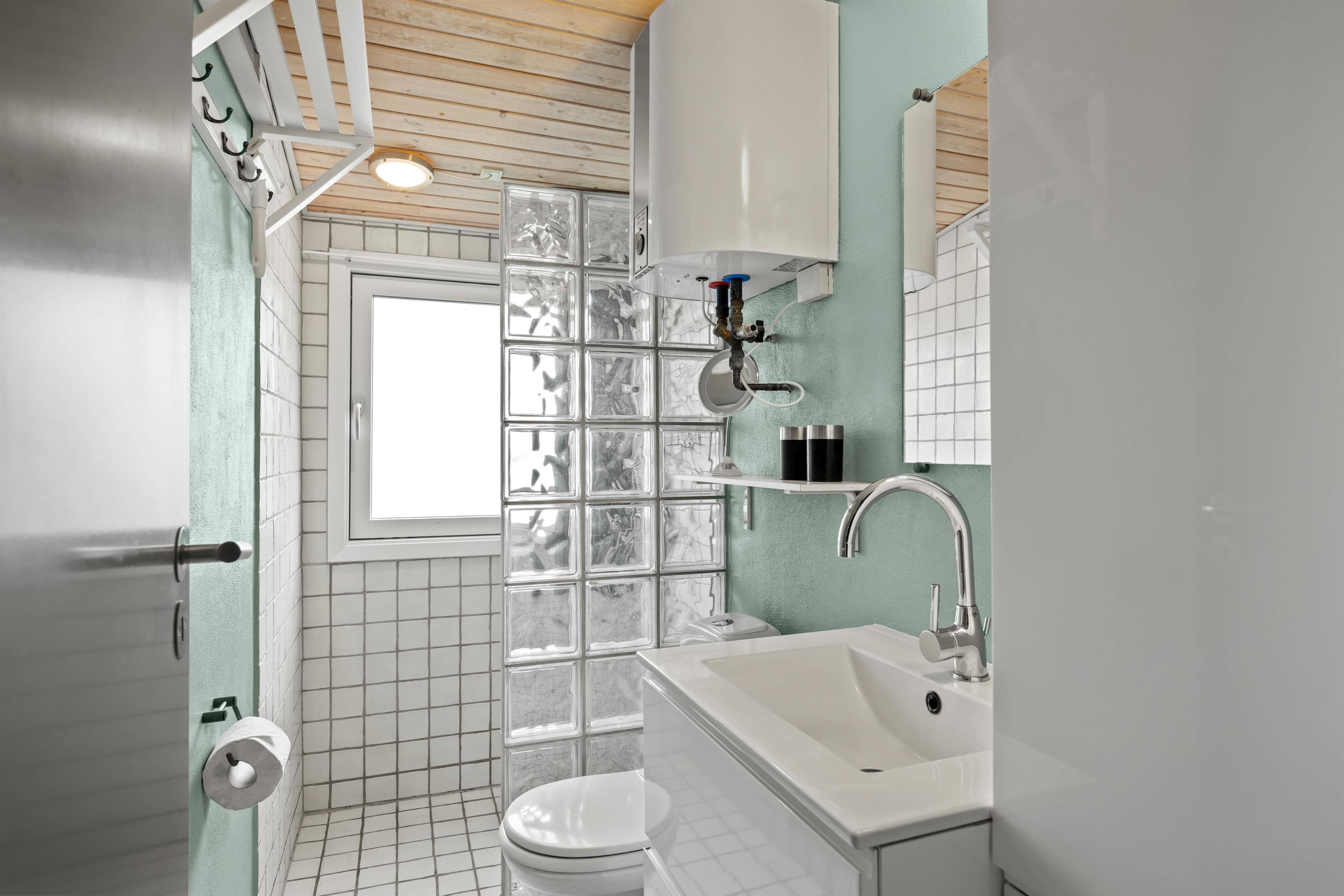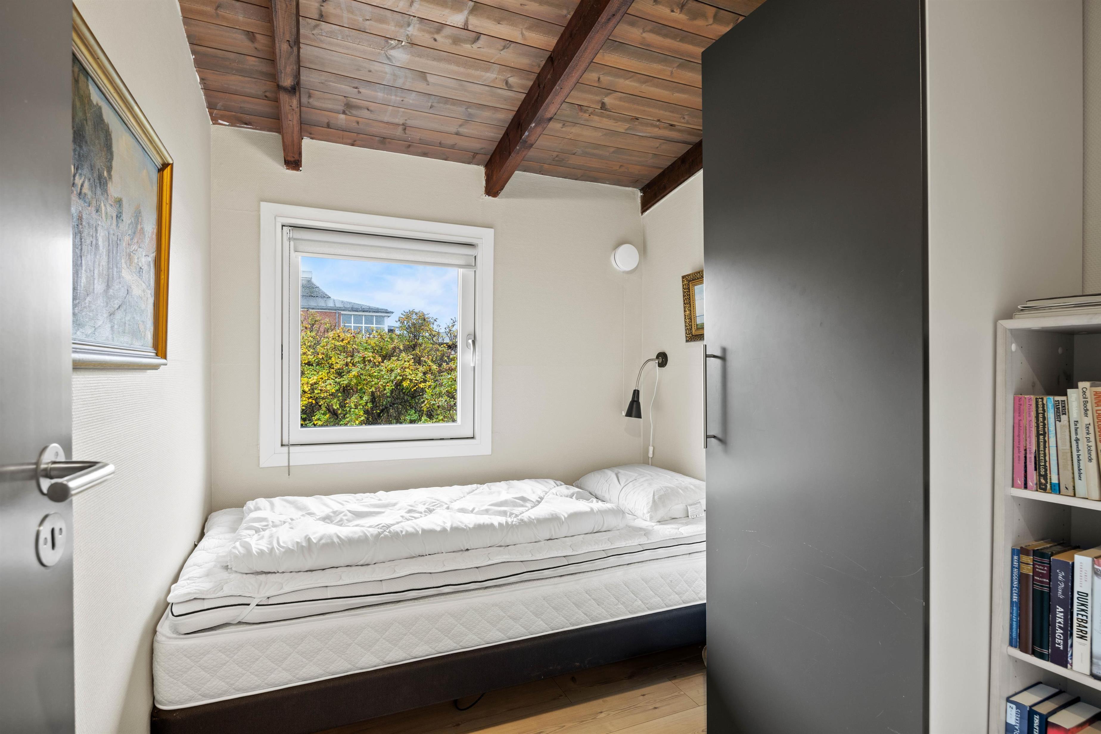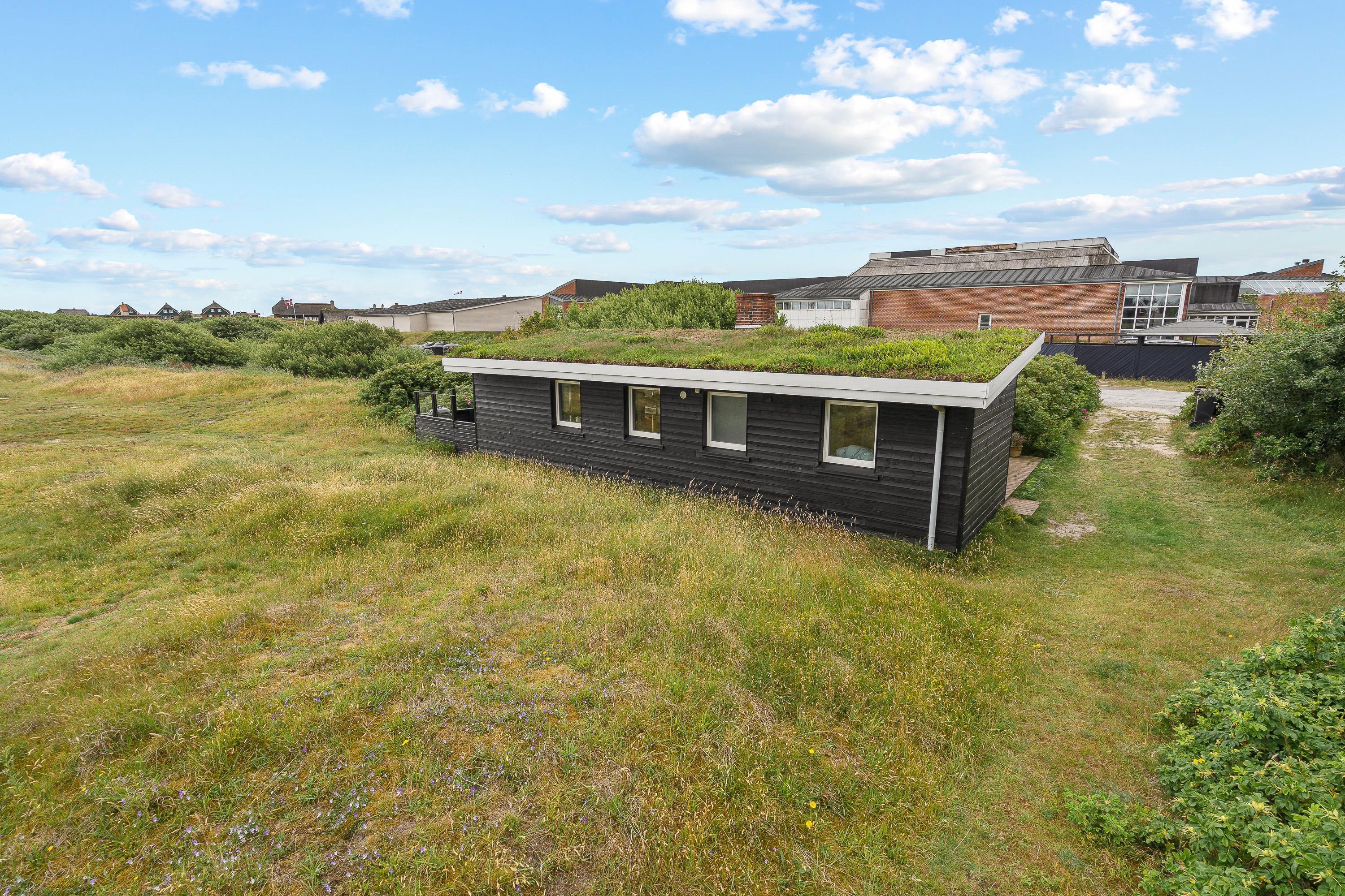 Med udgang fra opholdsstuen ligger en lille vestvendt terrasse godt gemt bag klitroser. Her kan I sidde ganske uforstyrret og nyde duften af klitroser og hav. Herfra har I også adgang til skuret, der indeholder vaskemaskine og tørretumbler.