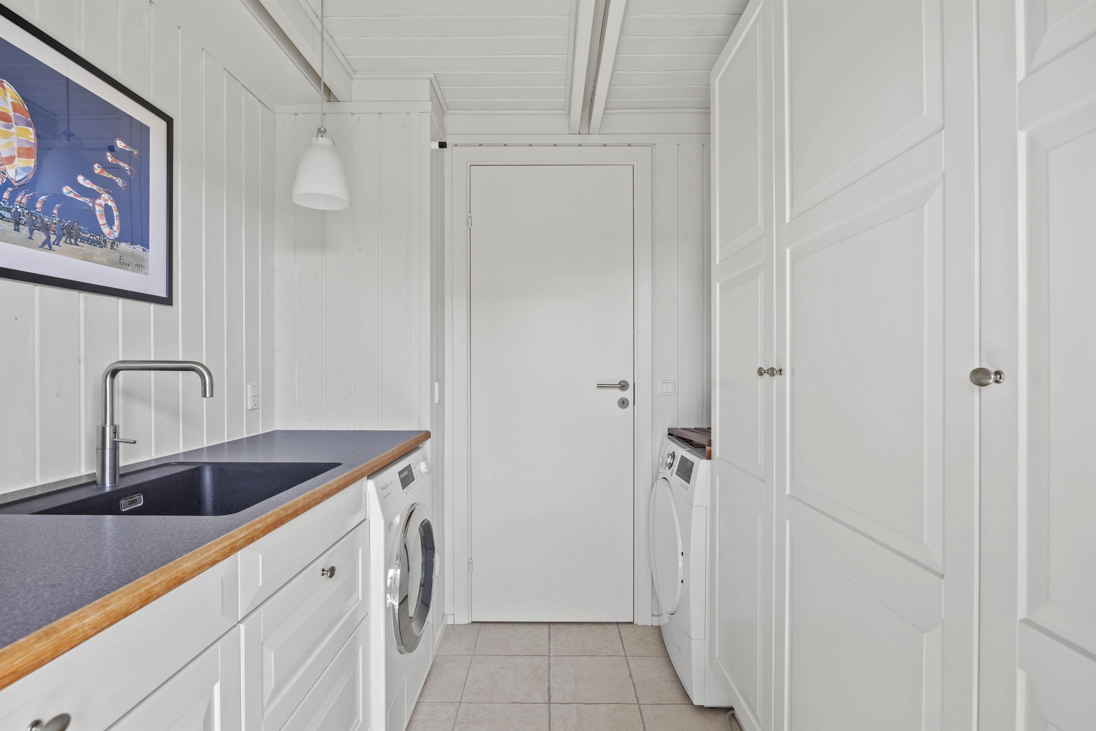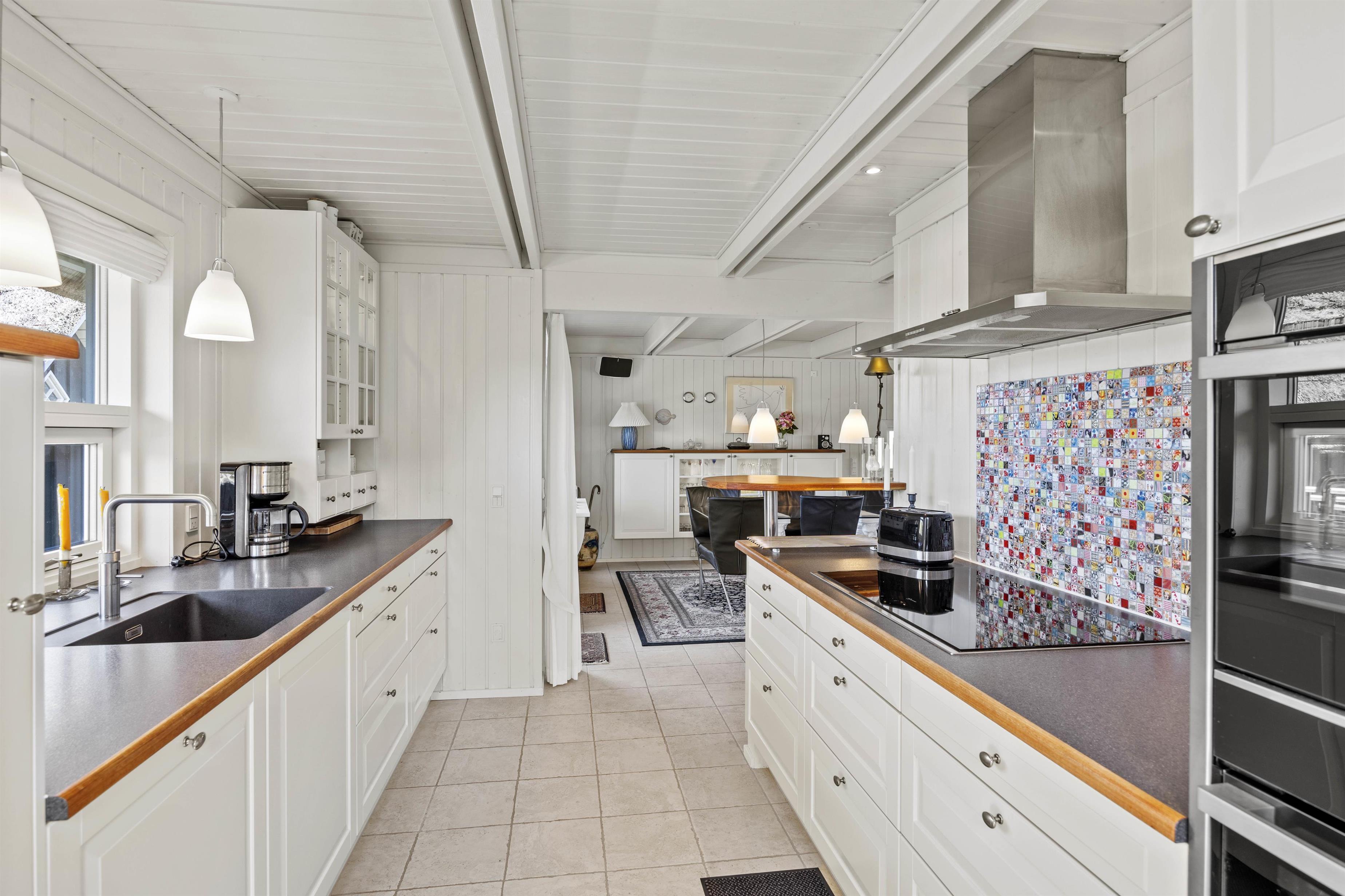 Feriehuset er udstyret med alle moderne bekvemmeligheder, der gør jeres ophold hyggeligt og bekvemt. Køkkenet er fuldt udstyret med blandt andet induktionskomfur og opvaskemaskine, så I kan hygge jer med at tilberede lækre hjemmelavede måltider. Den omkostnings- og energibesparende luft-til-luft varmepumpe sørger for behagelige temperaturer i feriehuset.