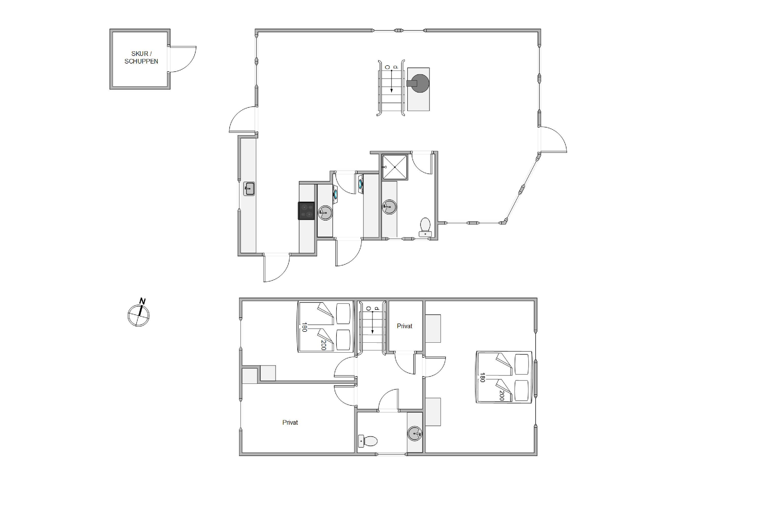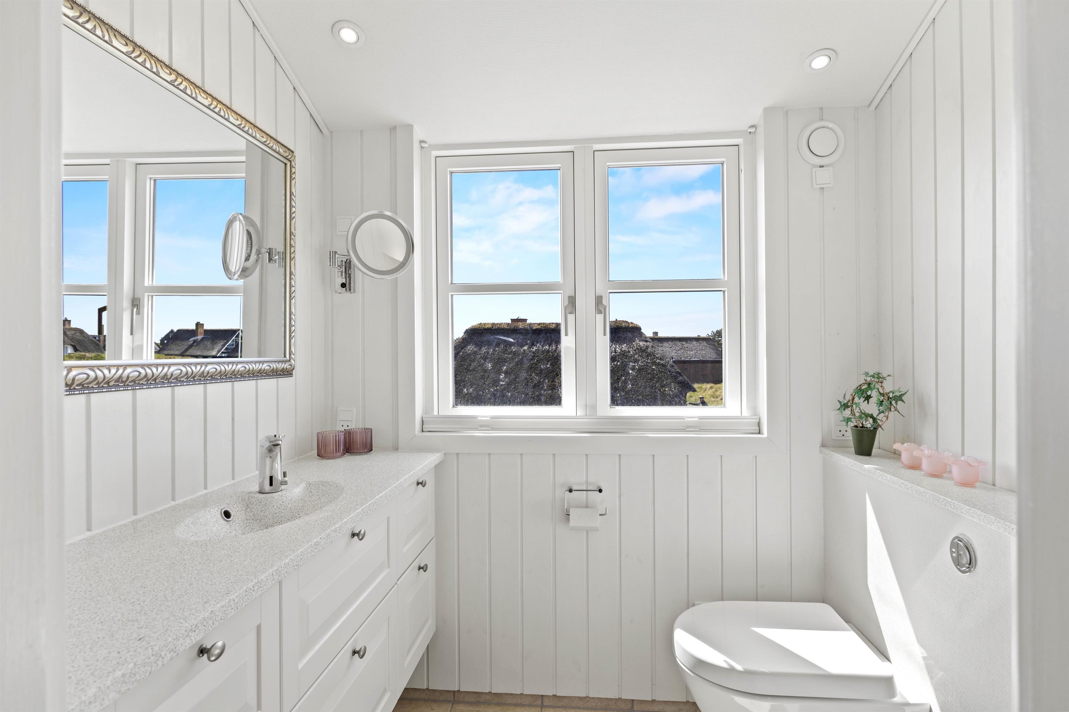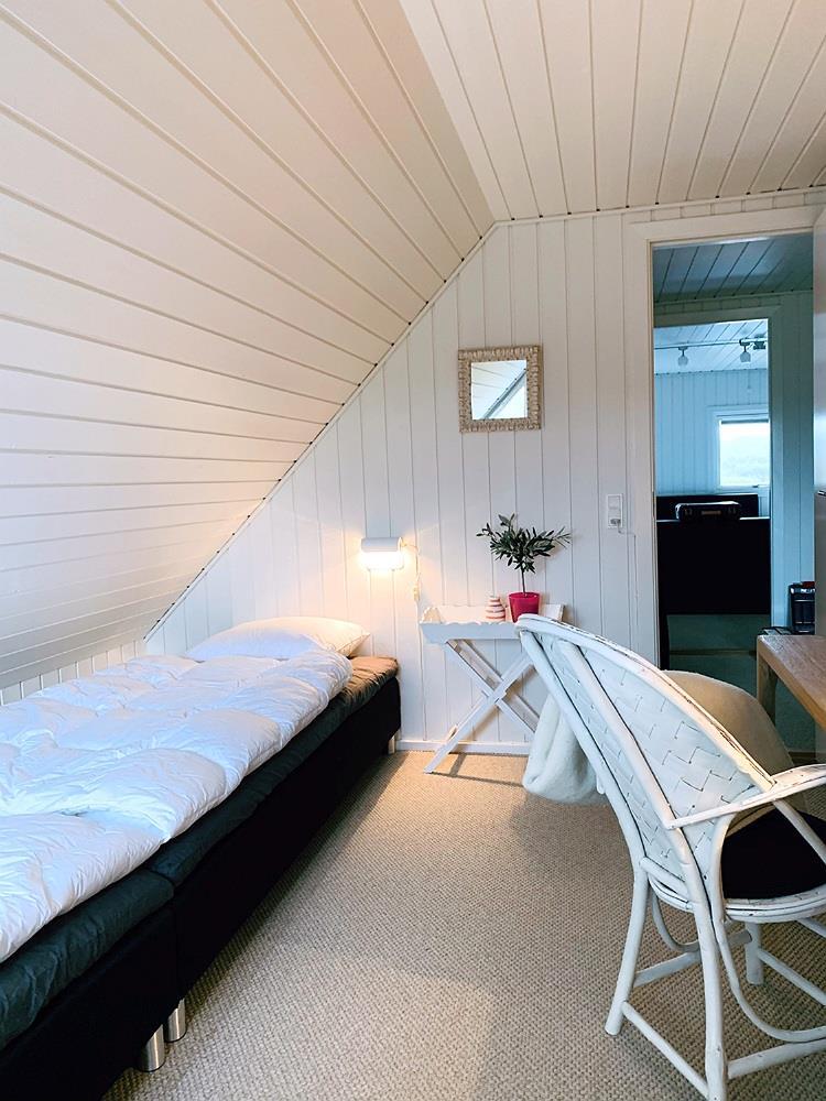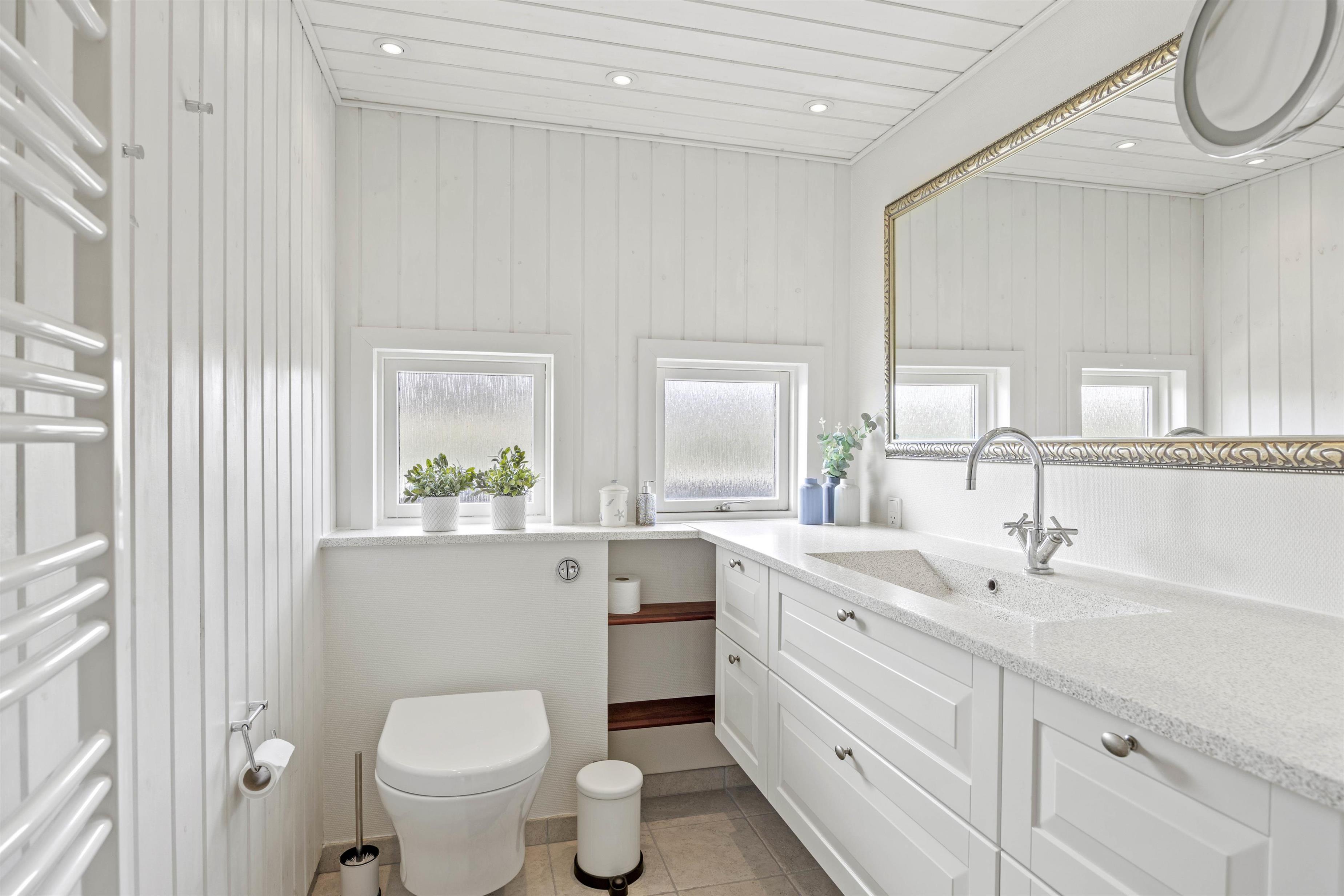 Der er både badeværelse og gæstetoilet med gulvvarme i feriehuset, hvilket gør logistikken nemmere når man er flere. I kan fordele sengepladserne i 3 indbydende soverum, 2 med dobbeltsenge og 1 værelse med 2 enkeltsenge, så I kan indrette jer, som det passer jer bedst.