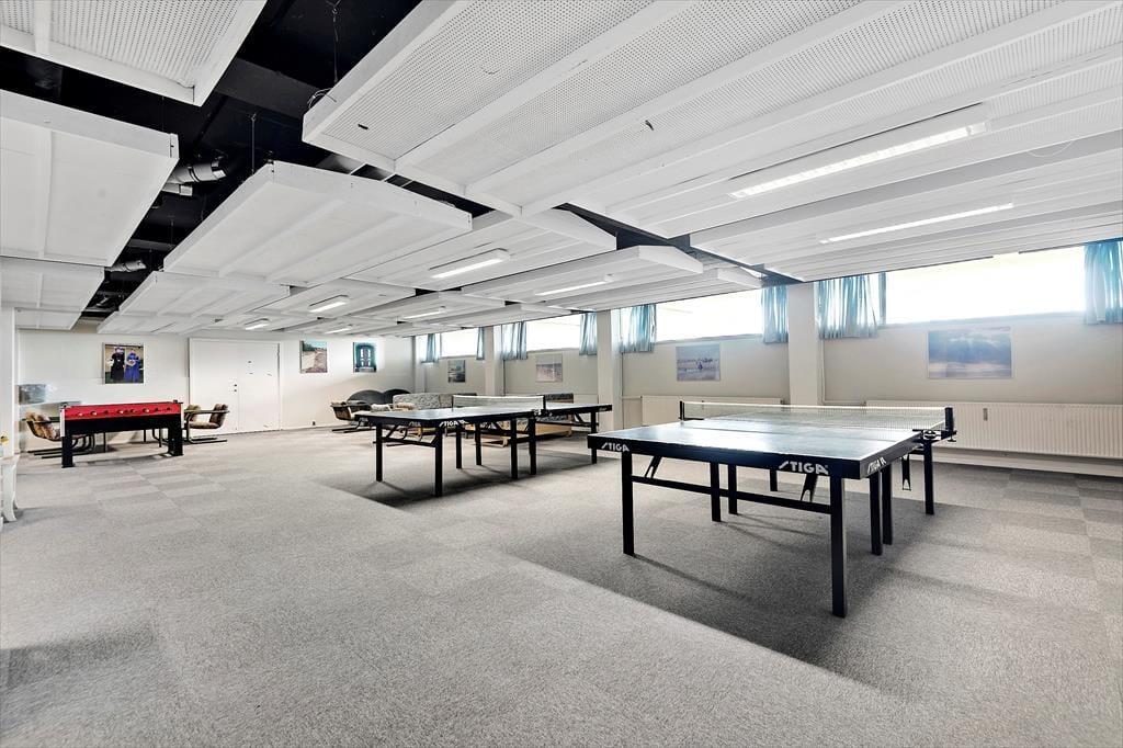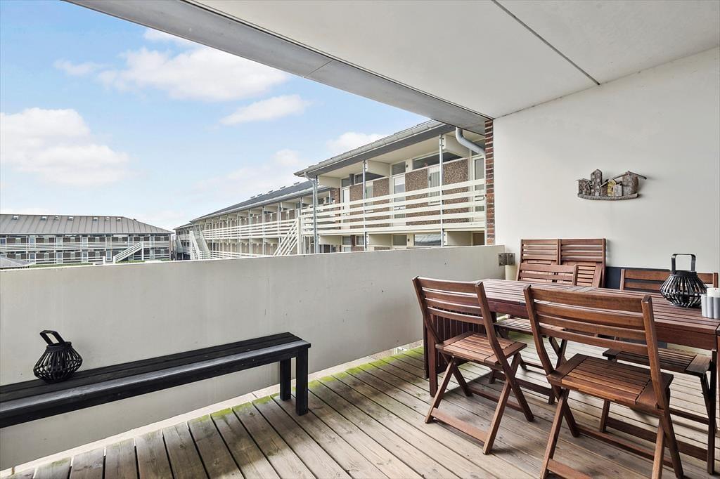 Lejligheden ligger på første sal, så når du slikker sol på altanen, har du et godt overblik over gårdmiljøets fællesarealer. Altanen er afskærmet i siderne, så der er gode chancer for at finde læ, og takket være overdækningen behøver du ikke at tænke på, om duggen falder, hvis du vil sidde herude hele aftenen. I gården kan du frit benytte den fælles swimmingpool i sommerperioden (cirka 1/7 – 1/9), og der er også en grillhytte og en legeplads, hvor børnene kan boltre sig. På de indendørs fællesarealer kan I blandt hygge jer med bordtennis og bordfodbold, og der er også et legerum til eventuelle regnvejrsdage, mens de indendørs svømmebassiner og saunaen inviterer til wellness og afslapning.