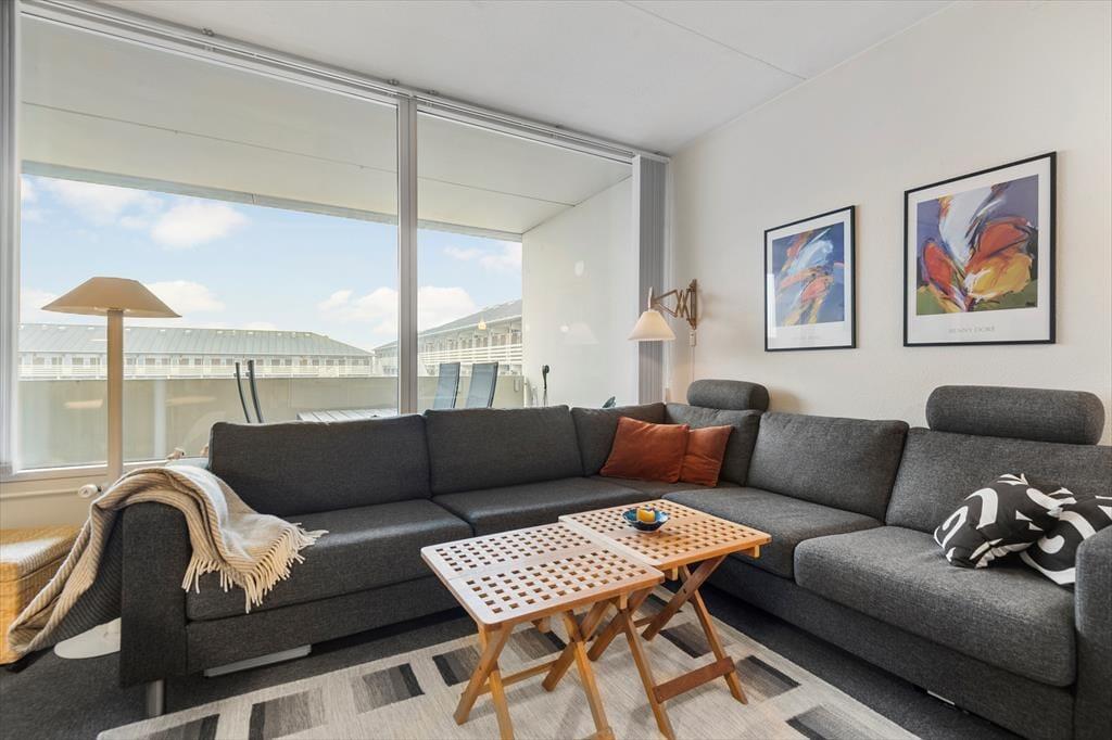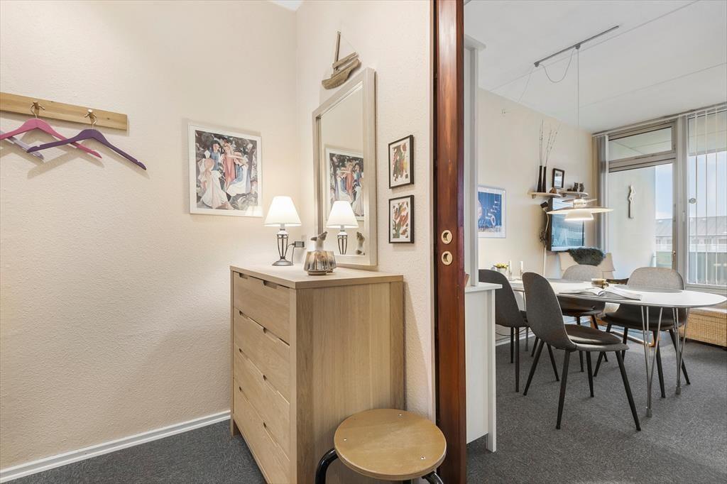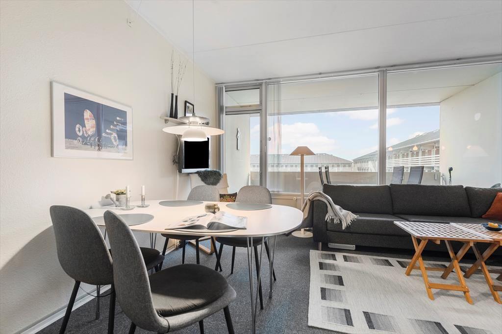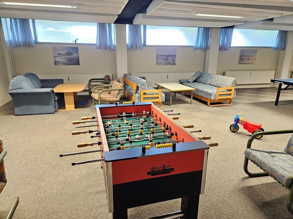 Når vejret er godt, er det skønt at tage morgenkaffen med ud på altanen for at starte dagen i den friske luft. Den overdækkede og godt afskærmede altan er et dejligt sted at sidde en stor del af dagen, men det kan selvfølgelig også være, at udsigten til poolområdet giver dig lyst til at smutte derned for at svømme eller dase på en solstol. Hvis du har børn med, vil de sikkert også synes, at det er hyggeligt at boltre sig på legepladsen, og inden døre finder I for øvrigt også et godt legeområde – inklusiv både bordtennisbord og bordfodbold, hvor hele familien kan dyste og have det sjovt. De indendørs svømmebassiner og saunaen er perfekte til eventuelle regnvejrsdage, og når solen står højt på himlen, er det perfekt at gå ud på fællesterrassen, der har flot udsigt til Fanø Strand.