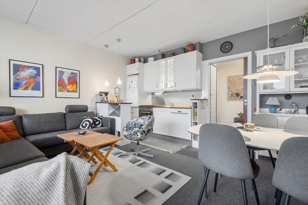 Lejligheden ligger på første sal, og den er et godt valg, uanset om du skal på en afslappende parferie eller vil tilbringe nogle hyggelige dage med din lille familie. Samlet på ét soveværelse er der sengepladser til to voksne og to små børn, mens resten af kvadratmeterne er fordelt på et velfungerende badeværelse og en dejlig stue med integreret køkken. I løbet af dagen er det herligt at nyde livet i stuen, uanset om det er boglæsning, kortspil eller tv-kigning, I slapper af med. Hvis du elsker at lave mad, kan du høre radio eller hyggesnakke med resten af selskabet, mens du forbereder en lasagne eller en anden yndlingsret – og bagefter kan I samles om spisebordet for at dele det lækre måltid.