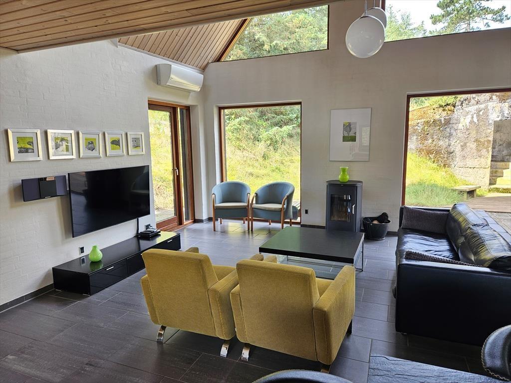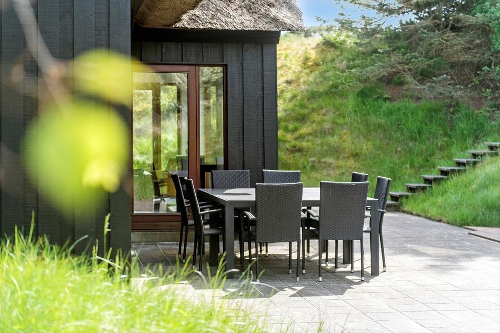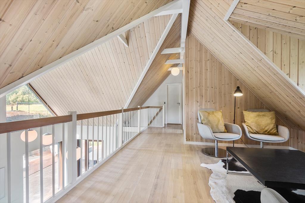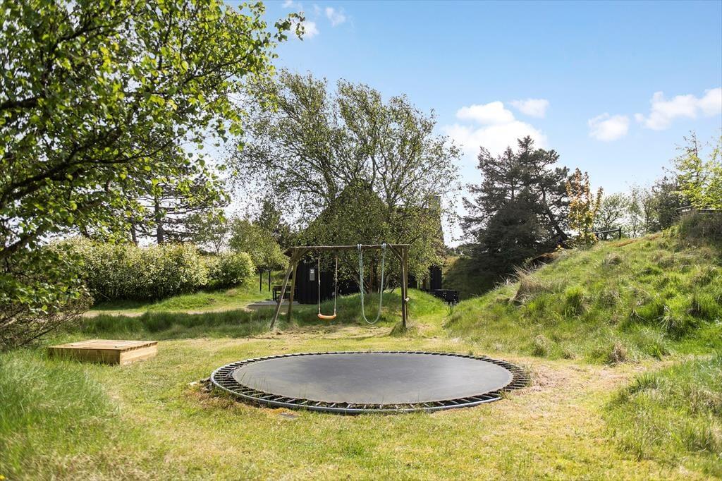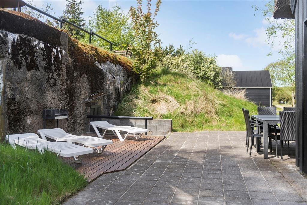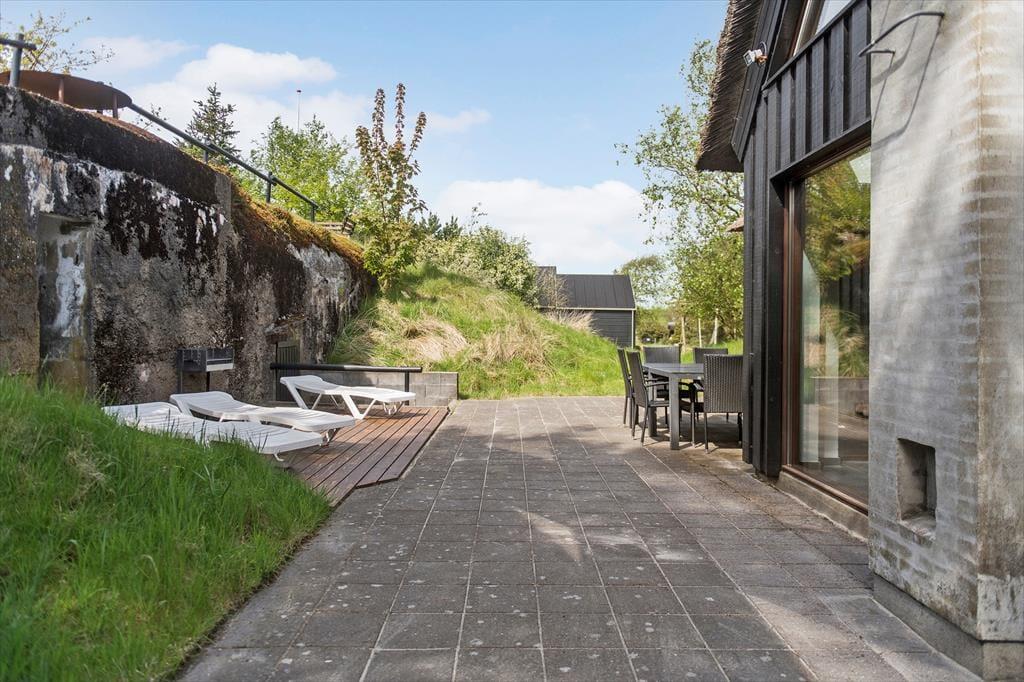 De udendørs arealer er noget helt særligt, for den grønklædte grund er kuperet, og en gammel bunker er endda bygget ind i terrænet. Hvis du vil nyde udsigten over landskabet, kan du sætte dig op på toppen, og ellers er husets nærmeste terrasser også dejlige steder at sidde – for eksempel på det sydvendte område, hvor du kan slikke sol i de ugenerede omgivelser. Det bliver helt sikkert spændende for børnene at lege og gå på opdagelse mellem naturgrundens bevoksning, og til de yngste er der både gynge og sandkasse, så de har noget at hygge sig med.