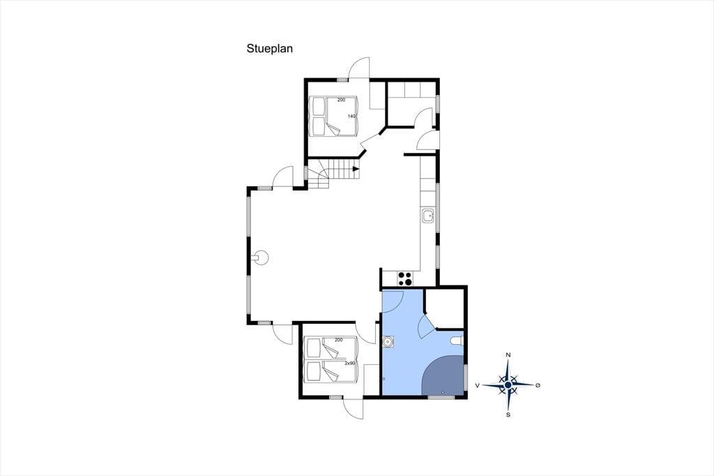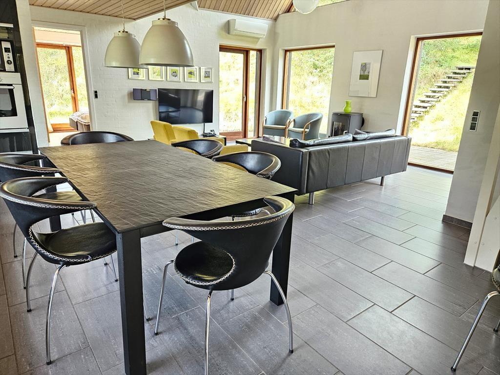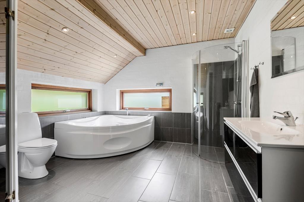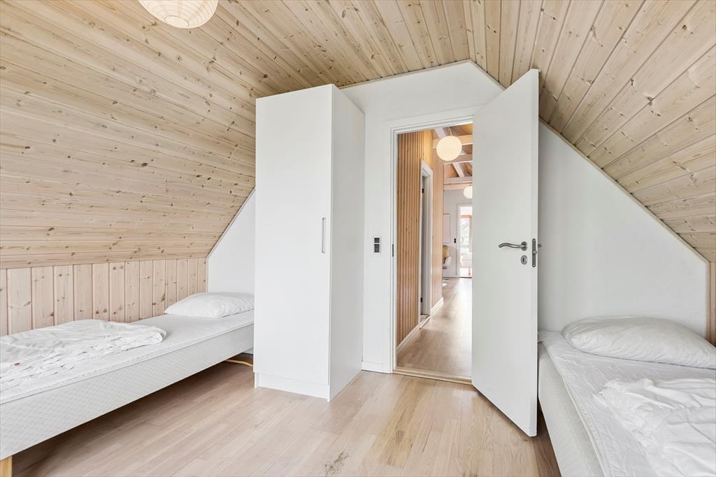 Det 155 m2 store sommerhus er opført i 2007, og det har en både elegant og komfortabel indretning med moderne møblement og lækkert design. Rumfordelingen gør huset ideelt til to familier, for de fire soveværelser og to badeværelser er ligeligt fordelt på to etager – og på førstesalen finder du for øvrigt en lille udsigtsstue, mens stueplan byder på et dejligt opholdsrum med integreret køkken. Uanset hvor du befinder dig, er der dejligt at være inden døre: Er det køligt udenfor, kan du tænde op i brændeovnen eller koble helt af med varme spabade og saunature. Og hvis solen skinner udenfor, får du glæde af vinduernes smukke lysindfald, medmindre du rykker driverlivet helt ud på den skønne naturgrund.