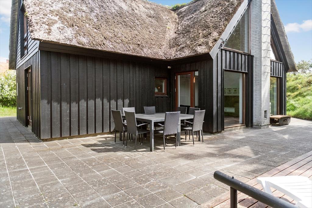Dette stråtækte kvalitetssommerhus nær Fanø Bad er den skønneste base for livsnyderne, der trænger til en afslappende ferie. Huset er stort og har en glimrende planløsning til otte personer – inklusiv et wellnessbadeværelse med spa og sauna – og ude er der gode terrasser, legeredskaber og sågar en bunker på den stemningsfulde naturgrund.