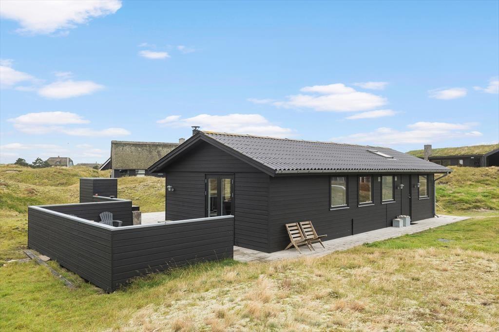 Dette velindrettede sommerhus der er personligt og med sjæl, ligger godt placeret i et naturskønt klitområde tæt på Fanø Bad og Vesterhavet. Vejen ender blindt lige ved huset, så du har fred og ro omkring dig, lige fra du indtager morgenkaffen på terrassen, og til du slutter dagen af med at kokkerere i det lækre udekøkken.