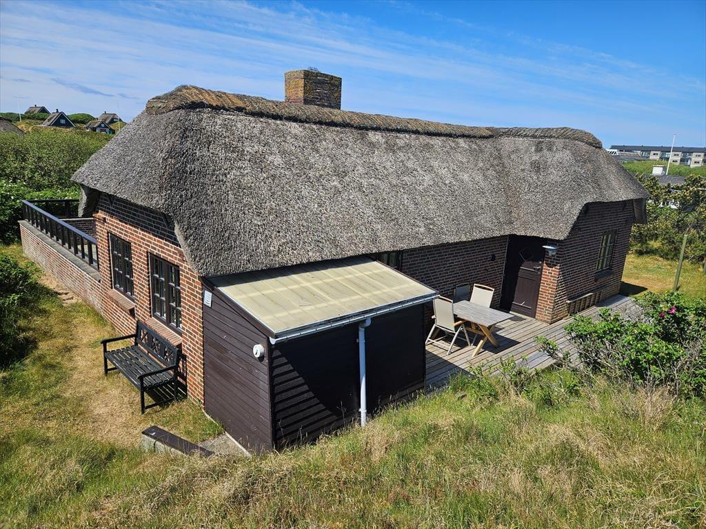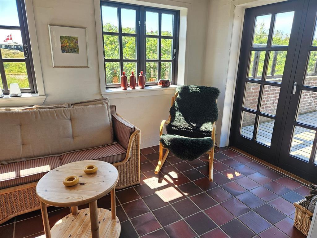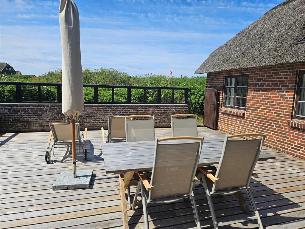 Træder du ud på terrassen, mærker du hurtigt, at dette er et sted, hvor ferielivet virkelig kan leves. Den store, lukkede terrasse er omgivet af duftende hybenroser, der både skaber læ og giver en særlig rolig stemning. Her kan du finde dig til rette med morgenkaffen i solen, samle familien til grillmiddag eller bare nyde lyden af fuglesang, mens hundene og børnene leger trygt inden for terrassens rammer. Atmosfæren er afslappet og indbydende, og terrassen indbyder til lange sommerdage under åben himmel og hyggelige aftener, hvor solen langsomt går ned bag klitterne.