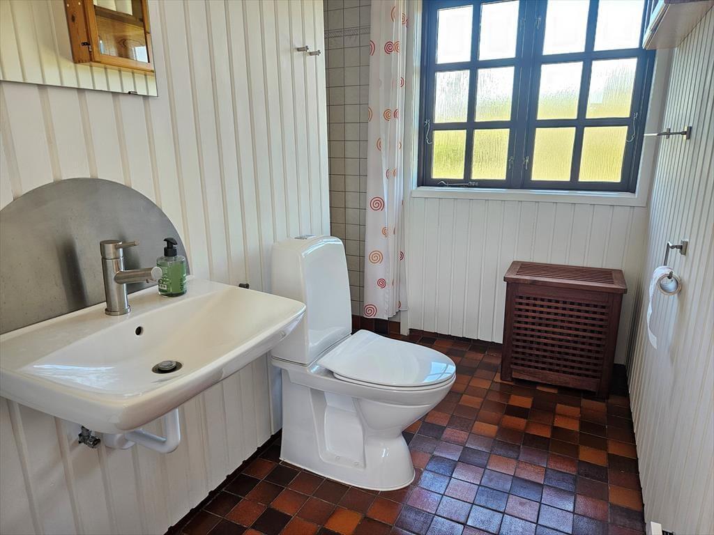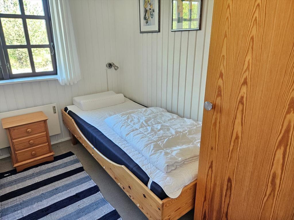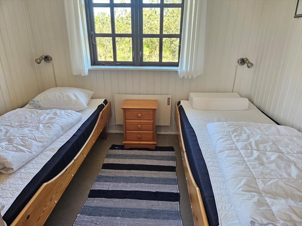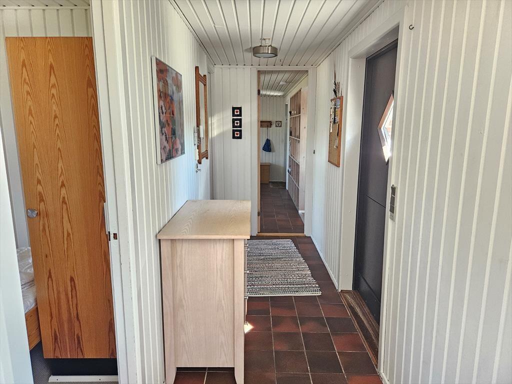 Indenfor mødes du af en lys og enkel indretning, hvor alt emmer af afslappet sommerhusidyl. Den hyggelige stue fungerer som husets samlingspunkt, og her kan du læne dig tilbage i sofaen, mens snakken går, eller nyde en stille stund med en god bog. Køkkenet er praktisk indrettet og ligger i åben forbindelse med opholdsrummet, så feriens måltider kan tilberedes uden at afbryde hyggen. De store vinduespartier lader solen skinne ind og giver en varm og rar atmosfære i hele rummet. Stemningen er gennemført sommerhusagtig – lige præcis den slags rammer, der gør det nemt at finde ferieroen og komme hinanden ved.