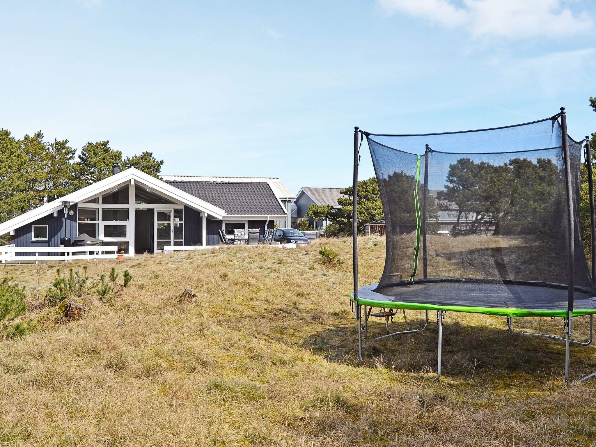 Indvendigt er huset komfortabelt indrettet og veludstyret, hvilket giver et lyst og behageligt miljø for familielivet. Udenfor inviterer en stor terrasse til lange sommeraftener med afslapning, spisning og nyde de rolige omgivelser. Den rummelige naturgrund omfatter også en havetrampolin til børn (brug på eget ansvar), hvilket sikrer sjov for yngre gæster, mens voksne nyder den fredelige atmosfære.