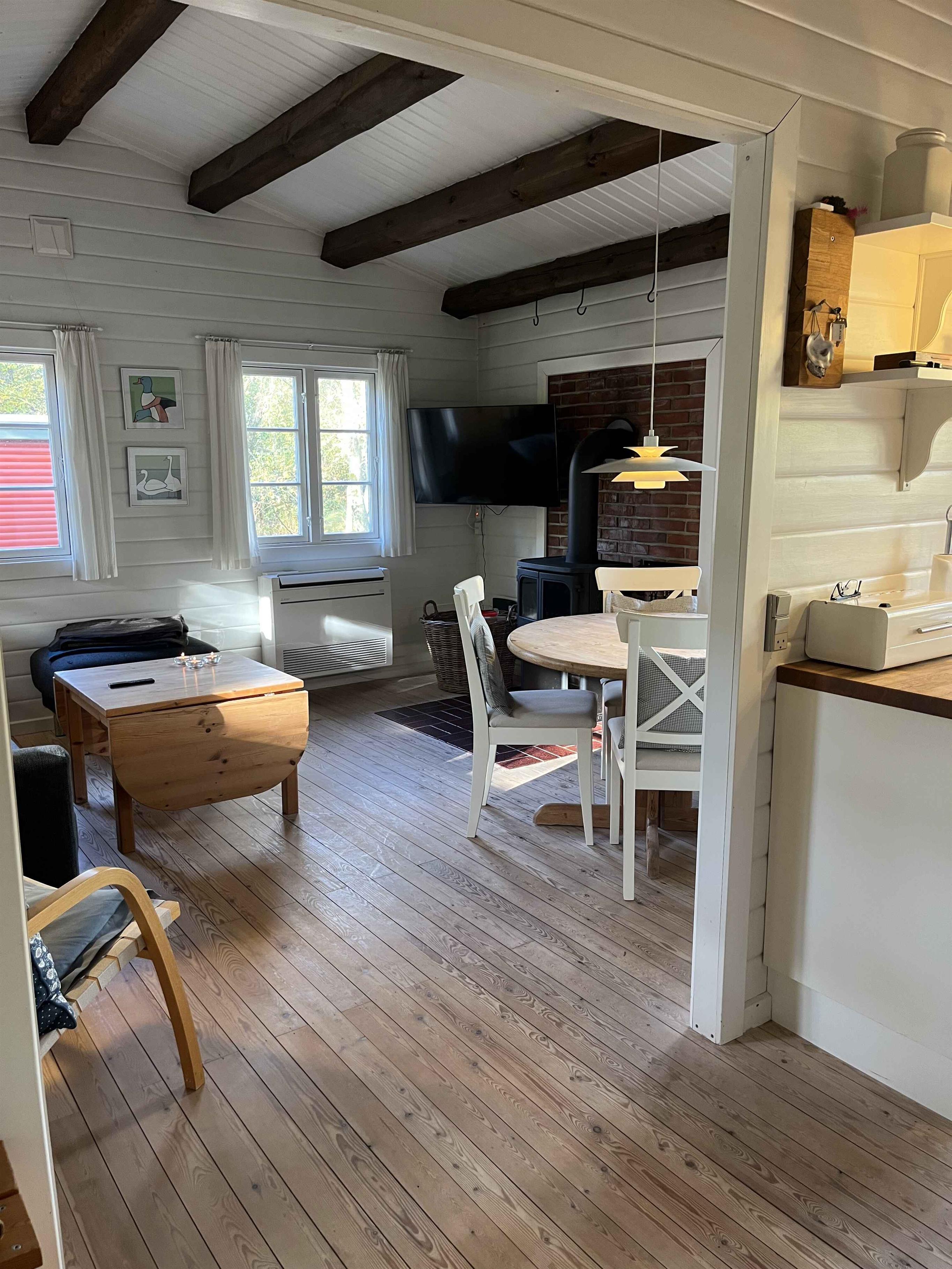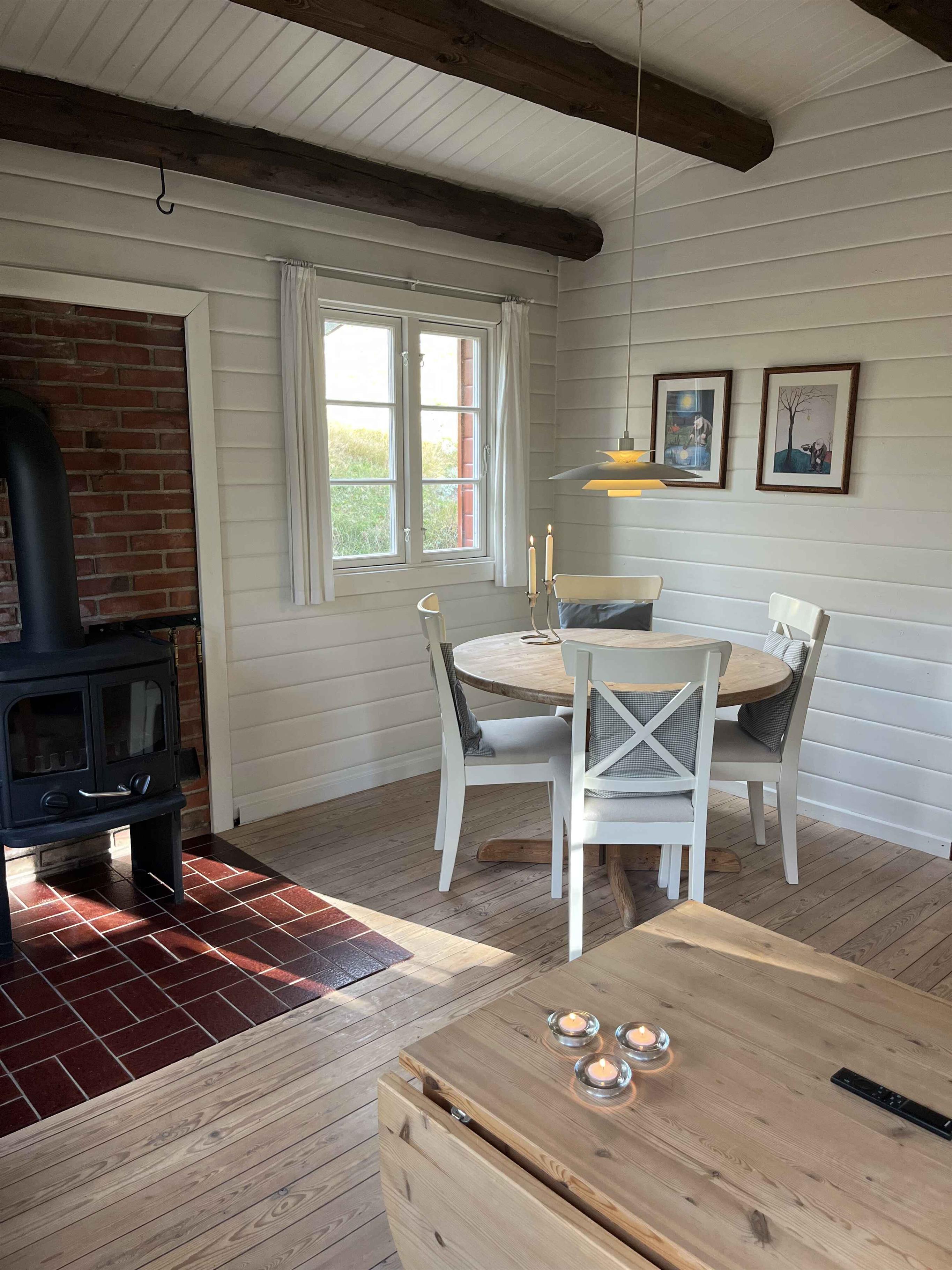Dejligt bjælkehus i Rindby på Fanø med plads til fire personer. Huset er 50 m2 og rummer to soveværelser, en lys stue med brændeovn samt et veludstyret køkken. Indretningen er enkel og funktionel, hvilket gør det nemt at slappe af og føle sig hjemme. Fra stuen er der adgang til en stor, overdækket terrasse. Her kan I tænde grillen, nyde lange måltider i det fri eller sidde i læ, mens I lytter til fuglesang. Huset ligger omgivet af natur, og dyrelivet kan opleves helt tæt på – ofte lige uden for døren. Området er et oplagt udgangspunkt for ferieoplevelser. Fanøs brede sandstrande ligger kun 1,5 km væk, perfekt til gåture, badning eller drager i vinden. Øen byder på skønne cykelruter, små hyggelige butikker, caféer og kunsthåndværk. Rindby er kendt for sit rolige tempo, hvor natur og hav mødes. Fanø er desuden et paradis for naturelskere. Her kan I opleve sælerne ved lavvande, se de karakteristiske vadefugle eller vandre i hede- og klitlandskaber. Øens kombination af uforstyrret natur og levende kulturmiljø giver en ferie med både ro og oplevelser lige inden for rækkevidde. Obs, udlejes ikke til erhversmæssigt brug.