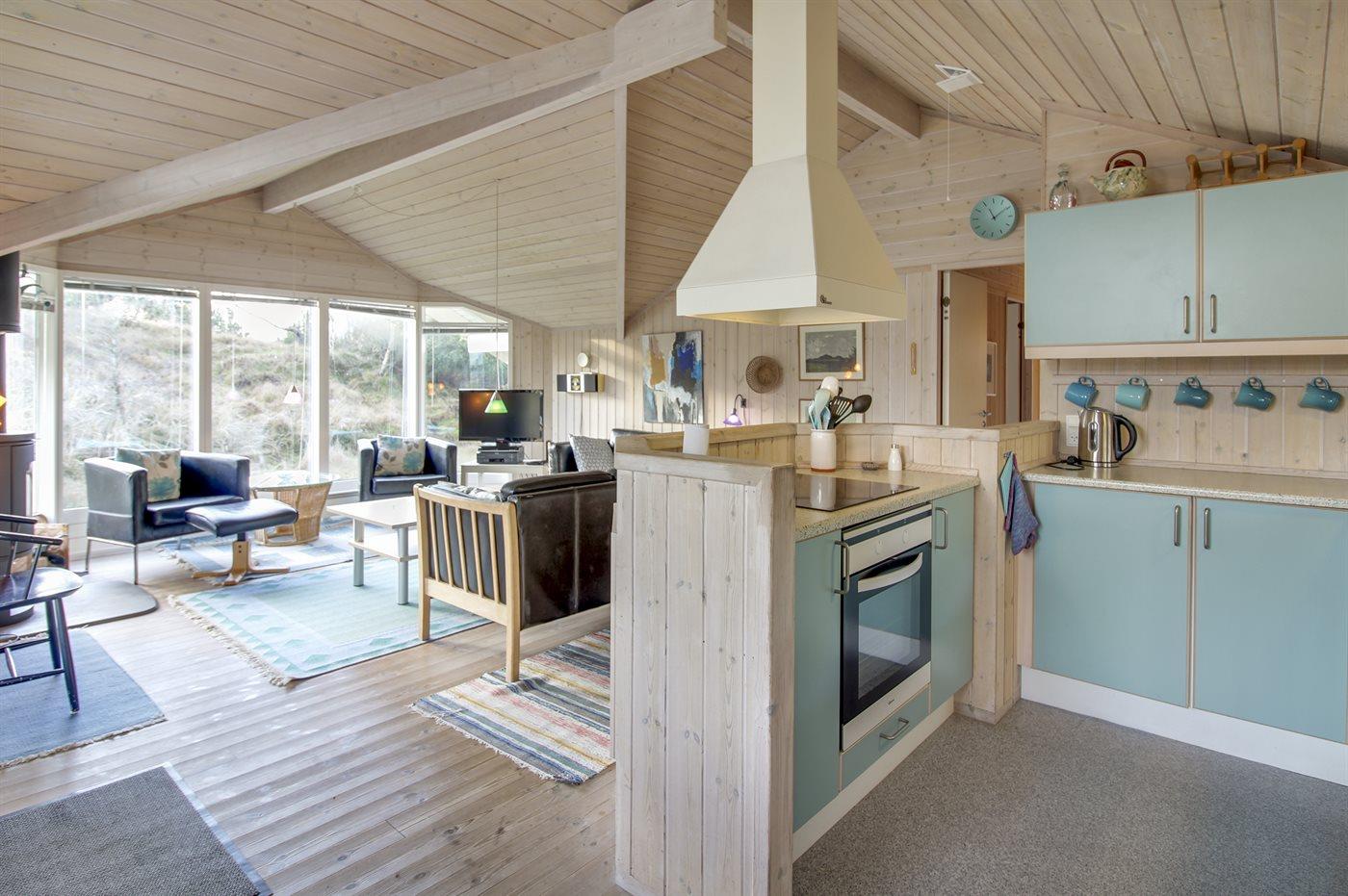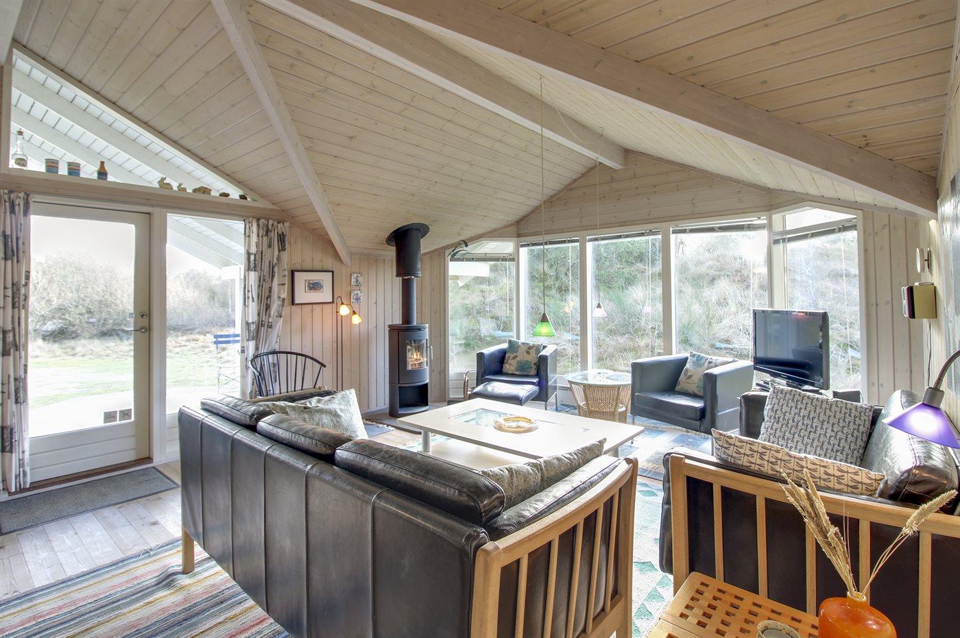 Dejligt sommerhus med en lys og hyggelig indretning. De store vinduespartier i stuen giver en fornemmelse af at befinde sig direkte i naturen. Huset har en ugenert beliggenhed, to fine terrasser hvoraf den ene er overdækket samt god udenom plads for børnene at lege på.