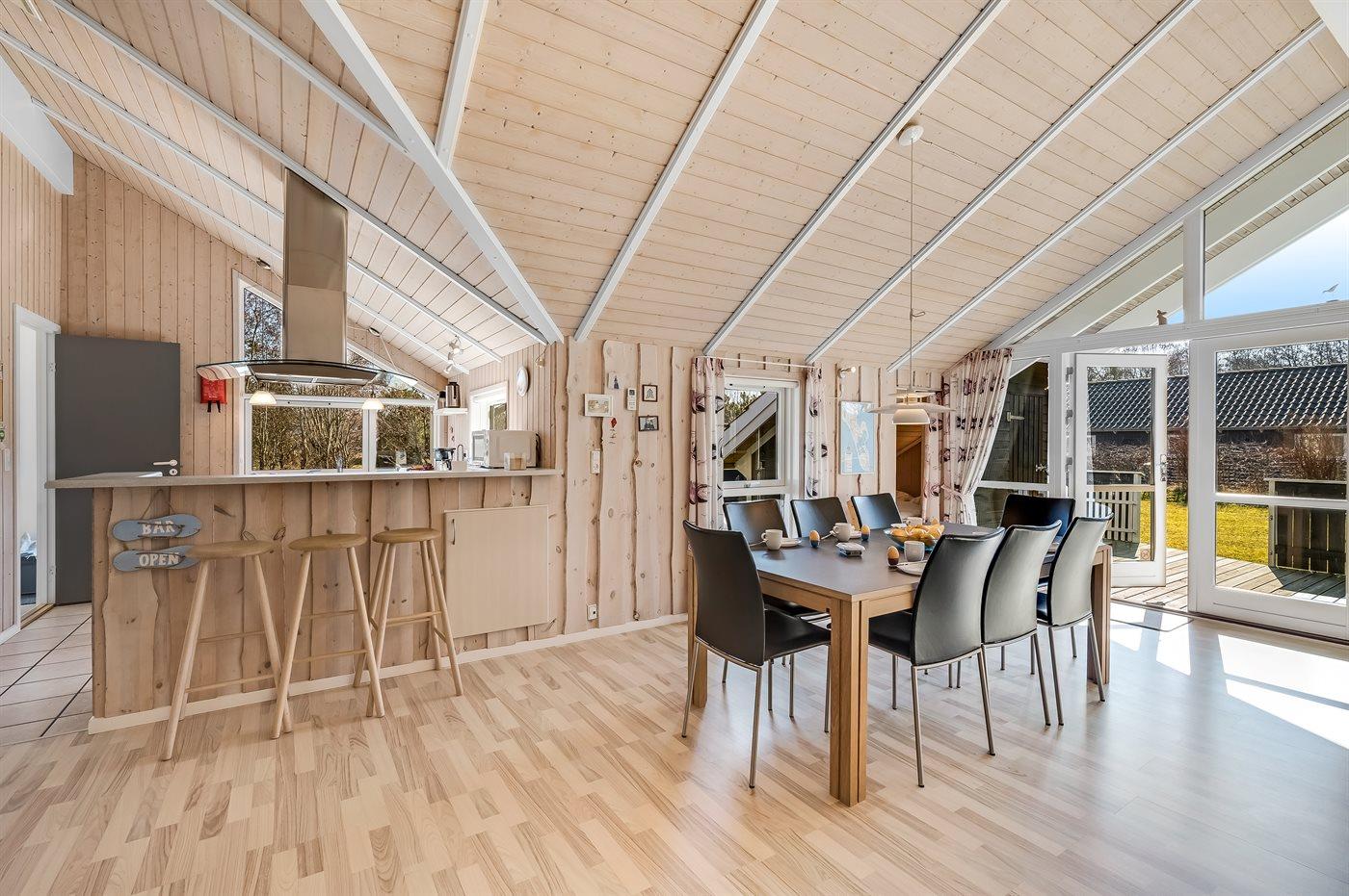 Sommerhuset egner sig til 7 personer. Ferieboligen på 103 m² er bygget i 2005. Det er ikke tilladt at medbringe husdyr. Ferieboligen er velisoleret og udstyret med energibesparende varmepumpe. Der er gulvvarme i entréen. Ferieboligen har vaskemaskine med tørretumbler. Der er tørresnor og tørrestativ. Frysekapacitet på 110 liter. Huset har brændeovn. Til de små er der 1 stk. høj børnestol.