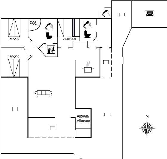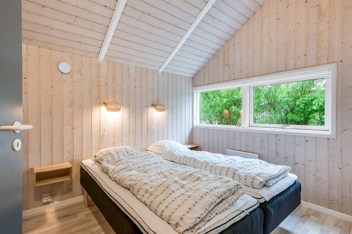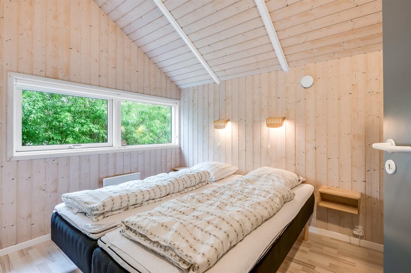 Der er 3 soveværelser. Sovepladserne fordeler sig på: 4 sovepladser i dobbeltsenge. 1 soveplads i enkeltseng. 2 sovepladser i køjeseng. Derudover er der 1 stk. børneseng.