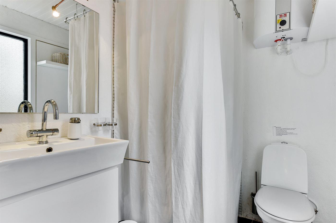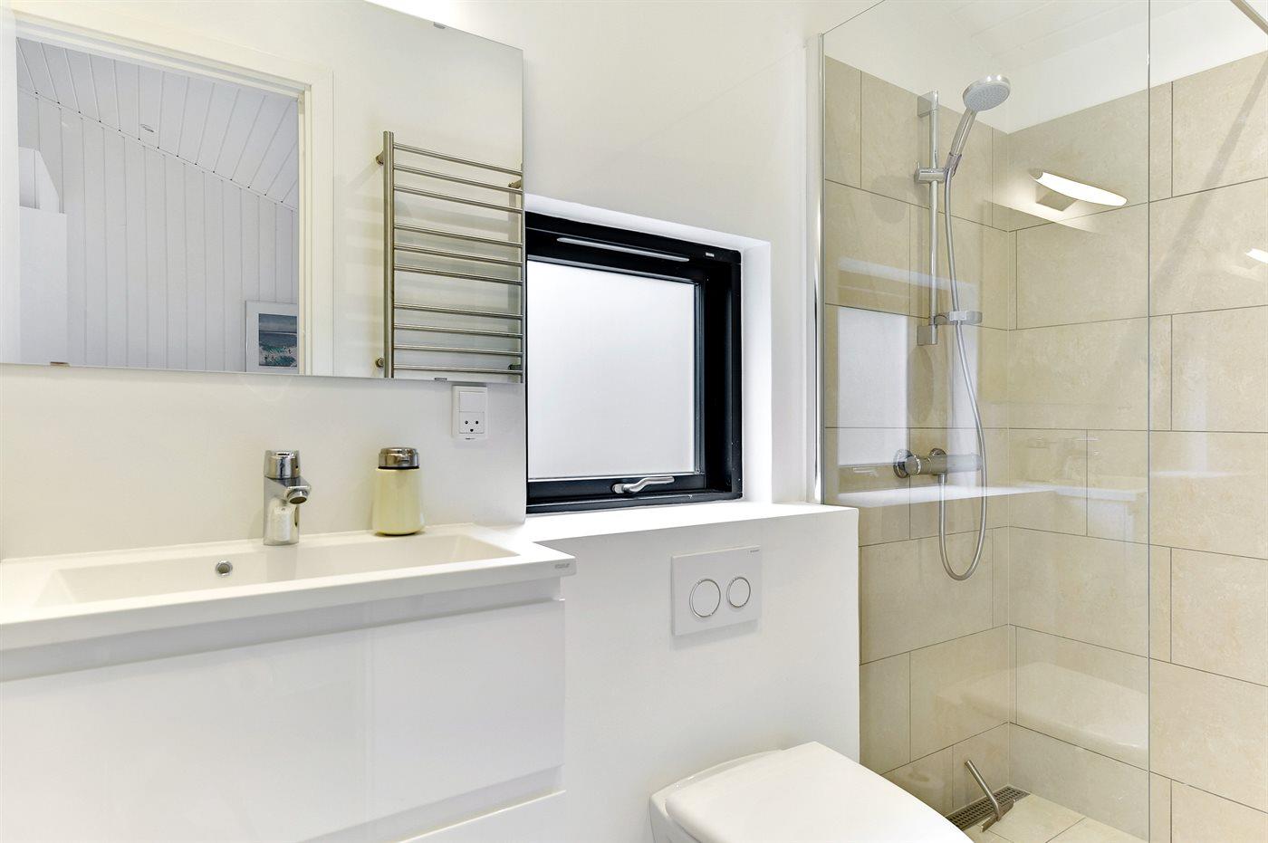 Der er 2 badeværelser med bruseniche og 2 toiletter. Der er gulvvarme på 1 badeværelse.