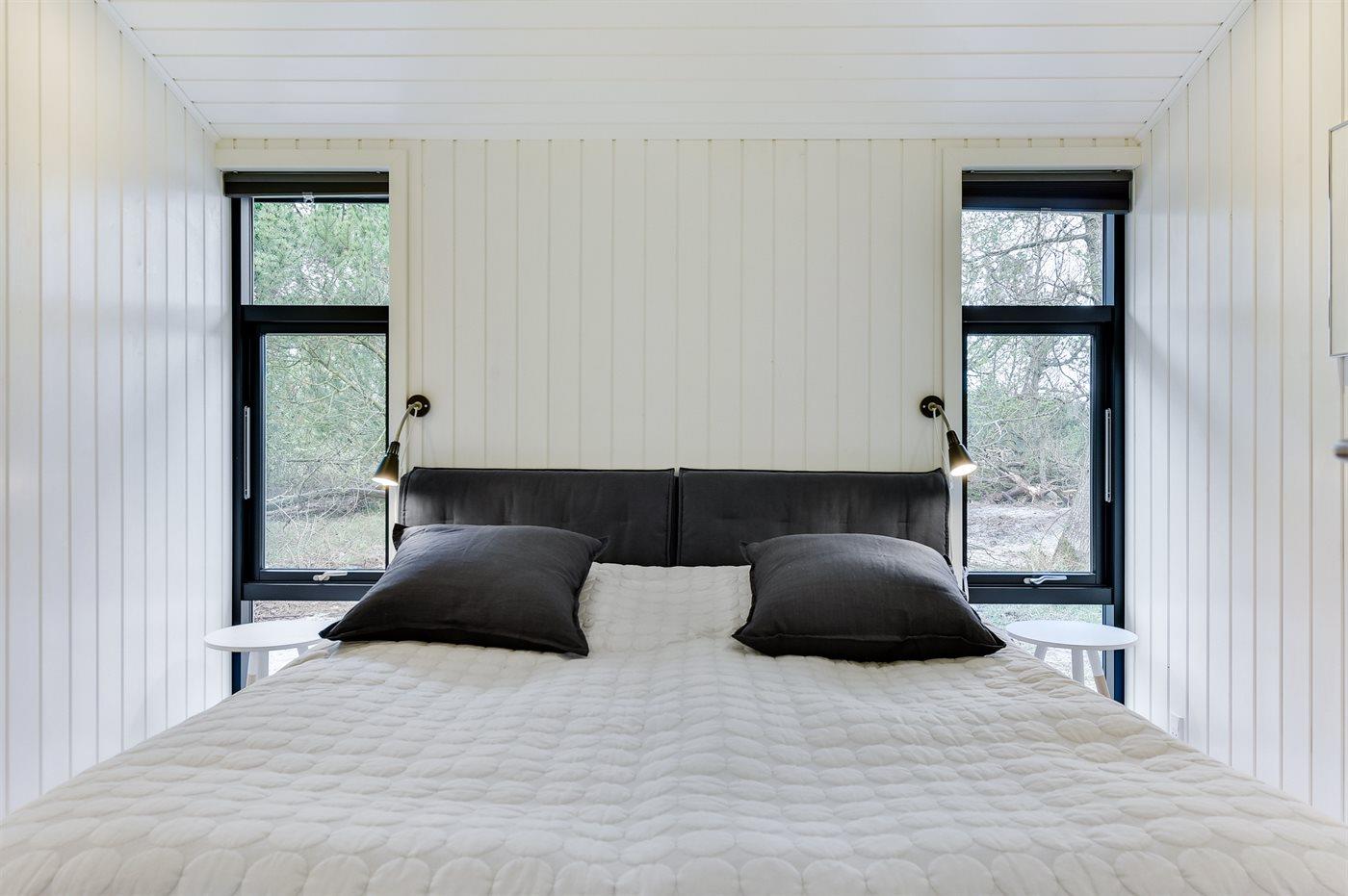 Der er i alt 3 soveværelser. Sovepladserne fordeler sig på: 4 sovepladser i dobbeltsenge. 2 sovepladser i enkeltsenge. Derudover er der 1 stk. barneseng.