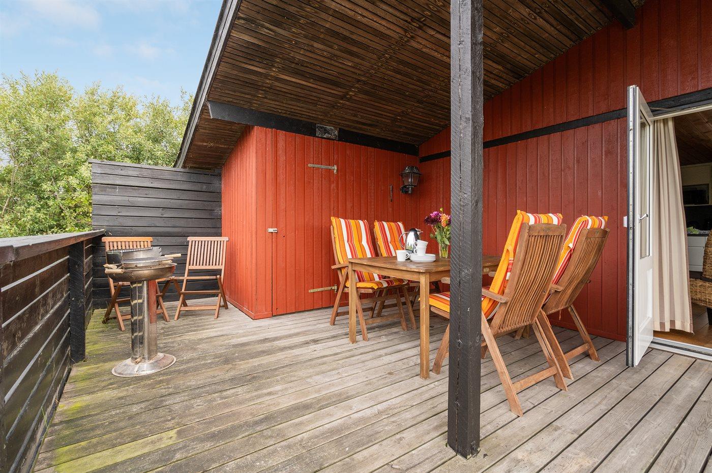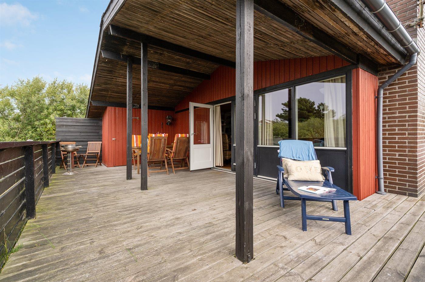 Ferieboligen er beliggende på en 2100 m² stor naturgrund. Der er 550 m til havet. Der er en sø i en afstand af 5 m. Nærmeste forretning er beliggende i en afstand af 550 m. Til ferieboligen hører 114 m² terrasseareal. Desuden er der 21 m² overdækket terrasse. Heraf i alt 134 m² lukket terrasse. Der er redskabsrum. Parkering ved ferieboligen.