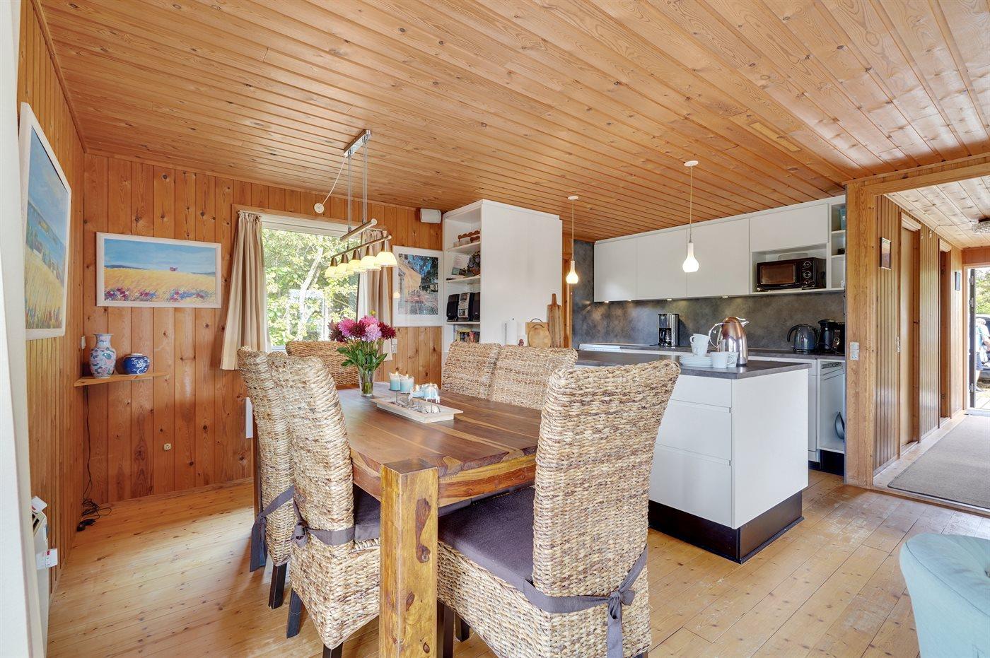 Køkkenet er udstyret med 1 køleskab. Der er 4 keramiske kogeplader, varmluftovn, mikrobølgeovn samt opvaskemaskine.
