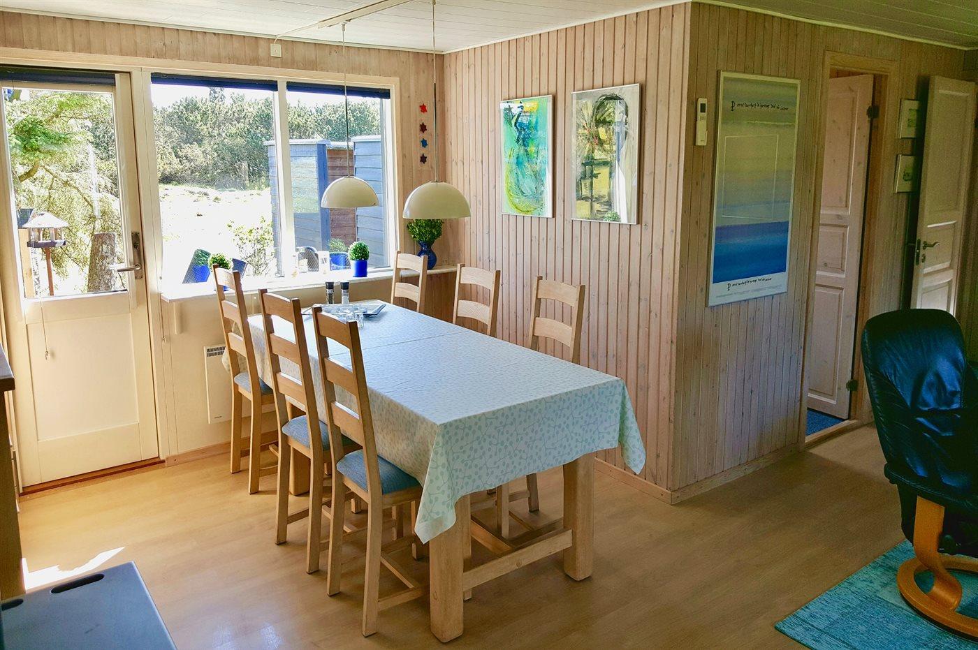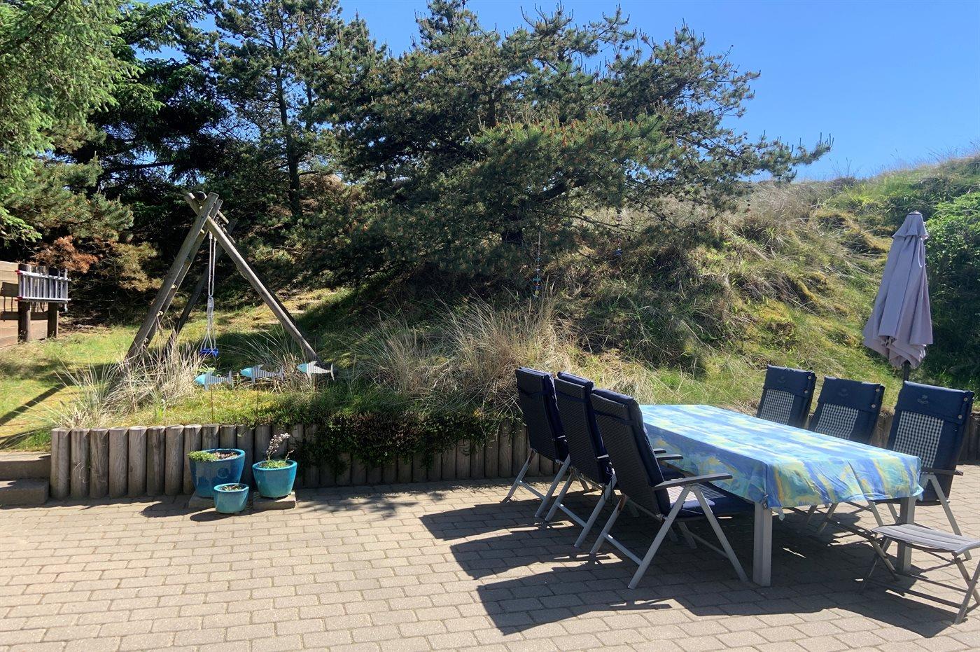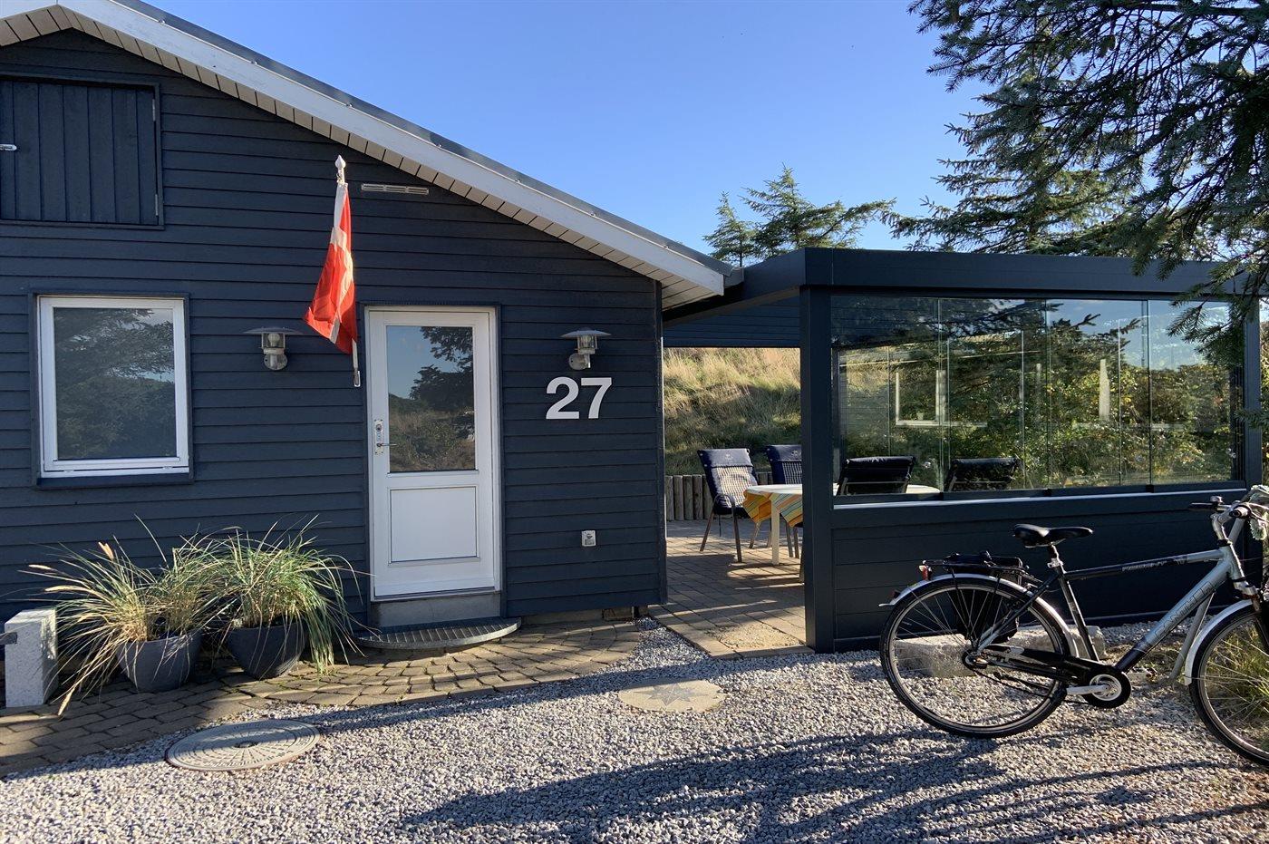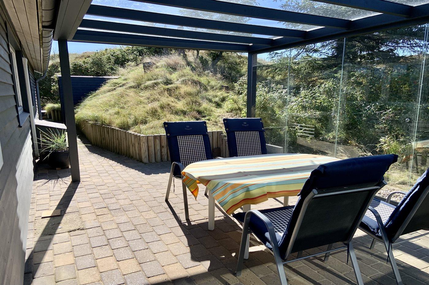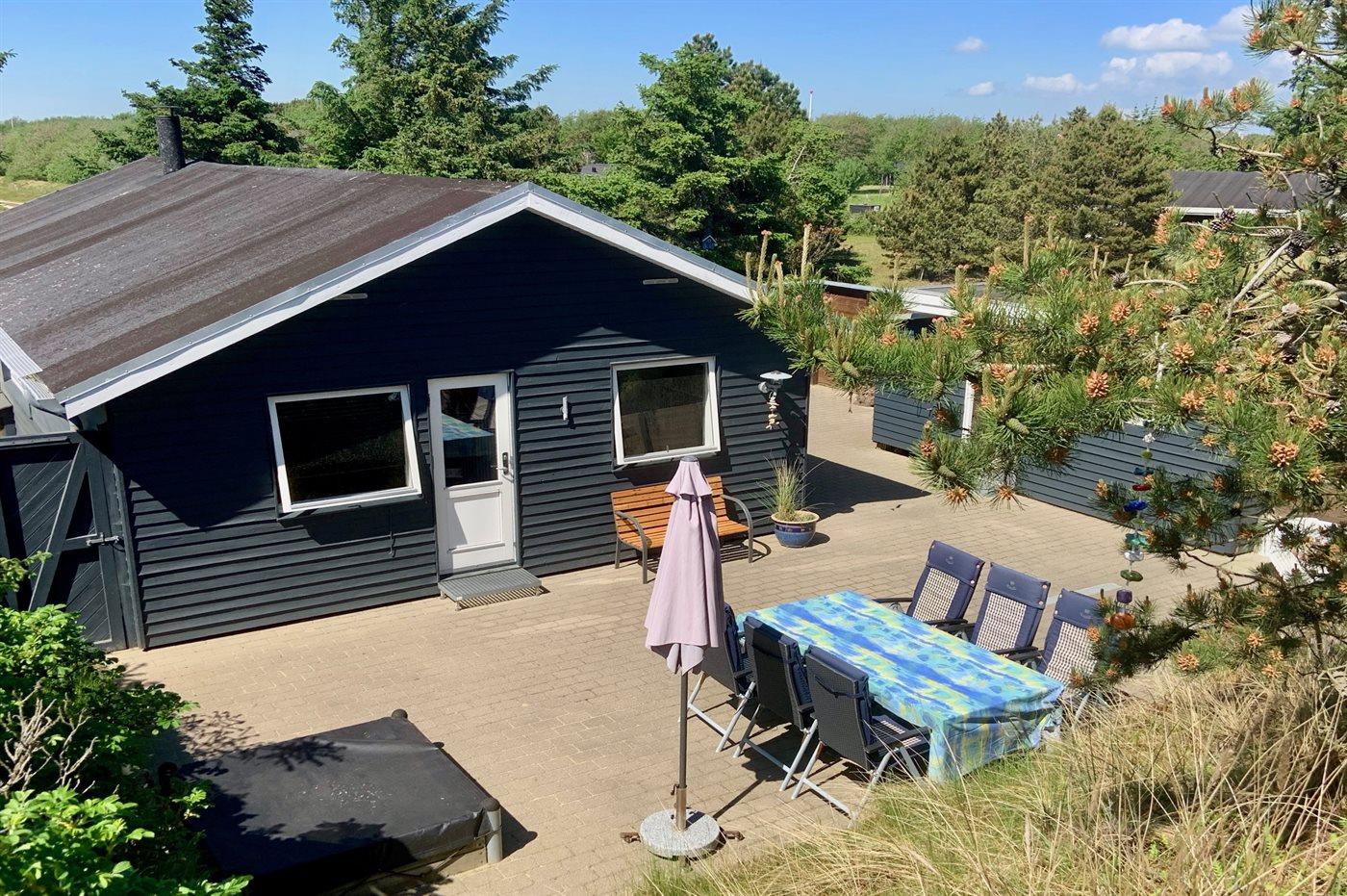 På en skøn og kuperet grund ligger dette dejlige og velindrettede sommerhus i naturskønne omgivelser lige op til store klitter, der sikrer at man er i læ for vestenvinden og uden for naboernes synsvidde på de tilhørende skønne terrassearealer. Fra toppen af egen klit er der fin udsigt over området og det rige dyreliv. Huset er renoveret fra A til Z, så det fremstår i virkelig flot, lyst og velholdt stand såvel inde som ude.