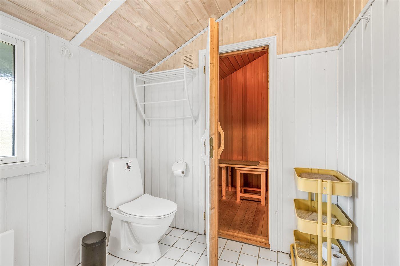 Der er 1 badeværelse med bruseniche og 1 toilet. I saunaen er der mulighed for afslapning.
