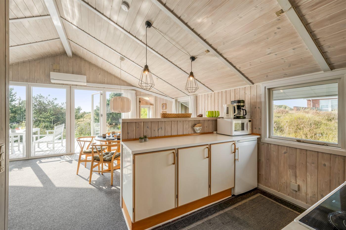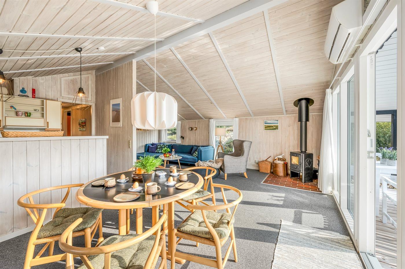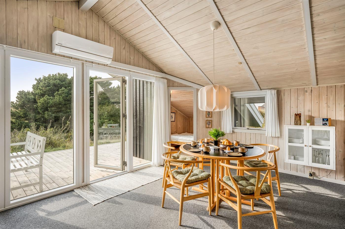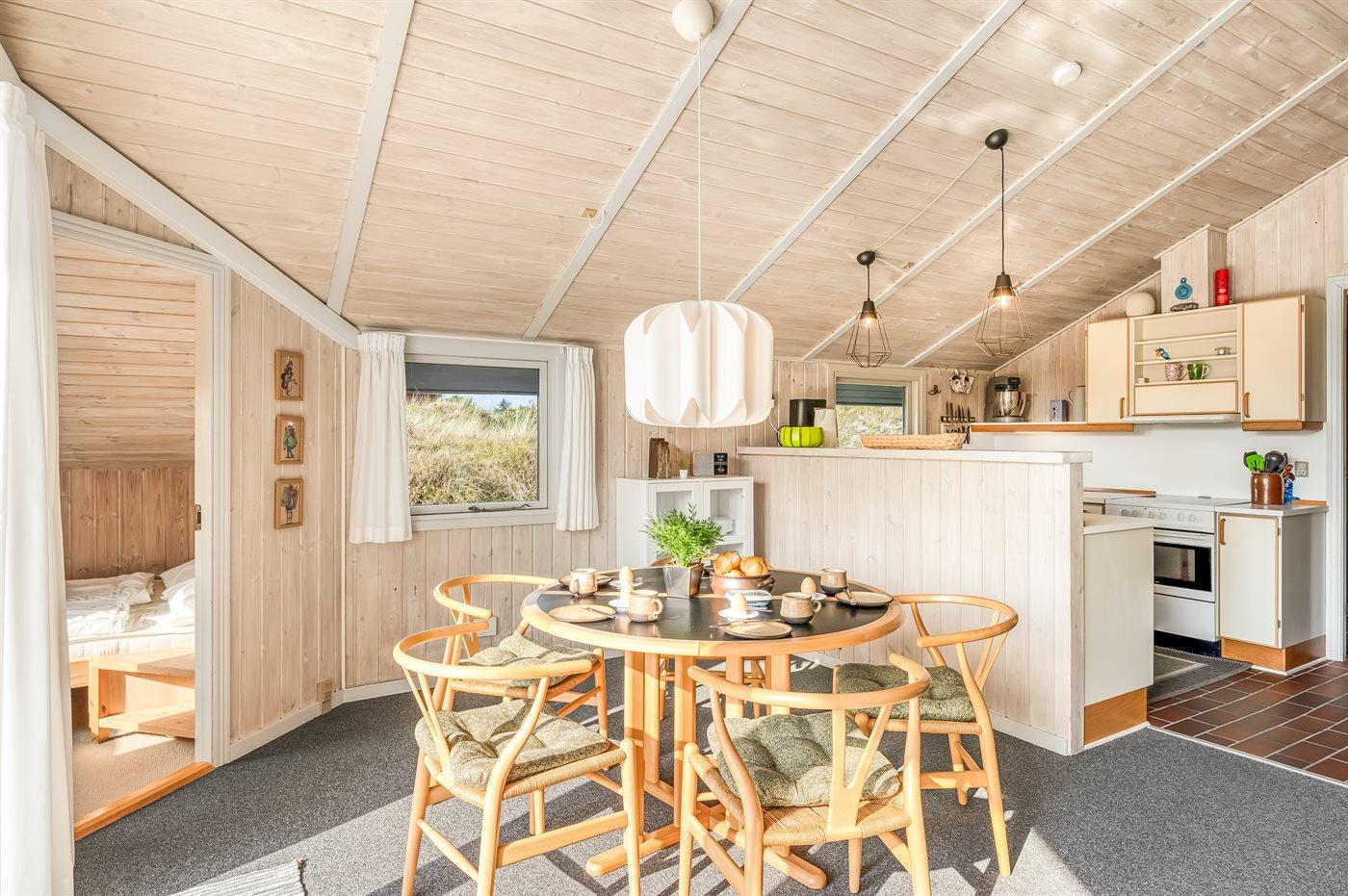 Dette dejlige feriehus er lyst og indbydende med en pæn og god indretning. Huset ligger skønt på en rolig og ugenert naturgrund i klitterræn. Huset har en dejlig, hyggelig terrasse, hvoraf 8 kvadratmeter er overdækket.