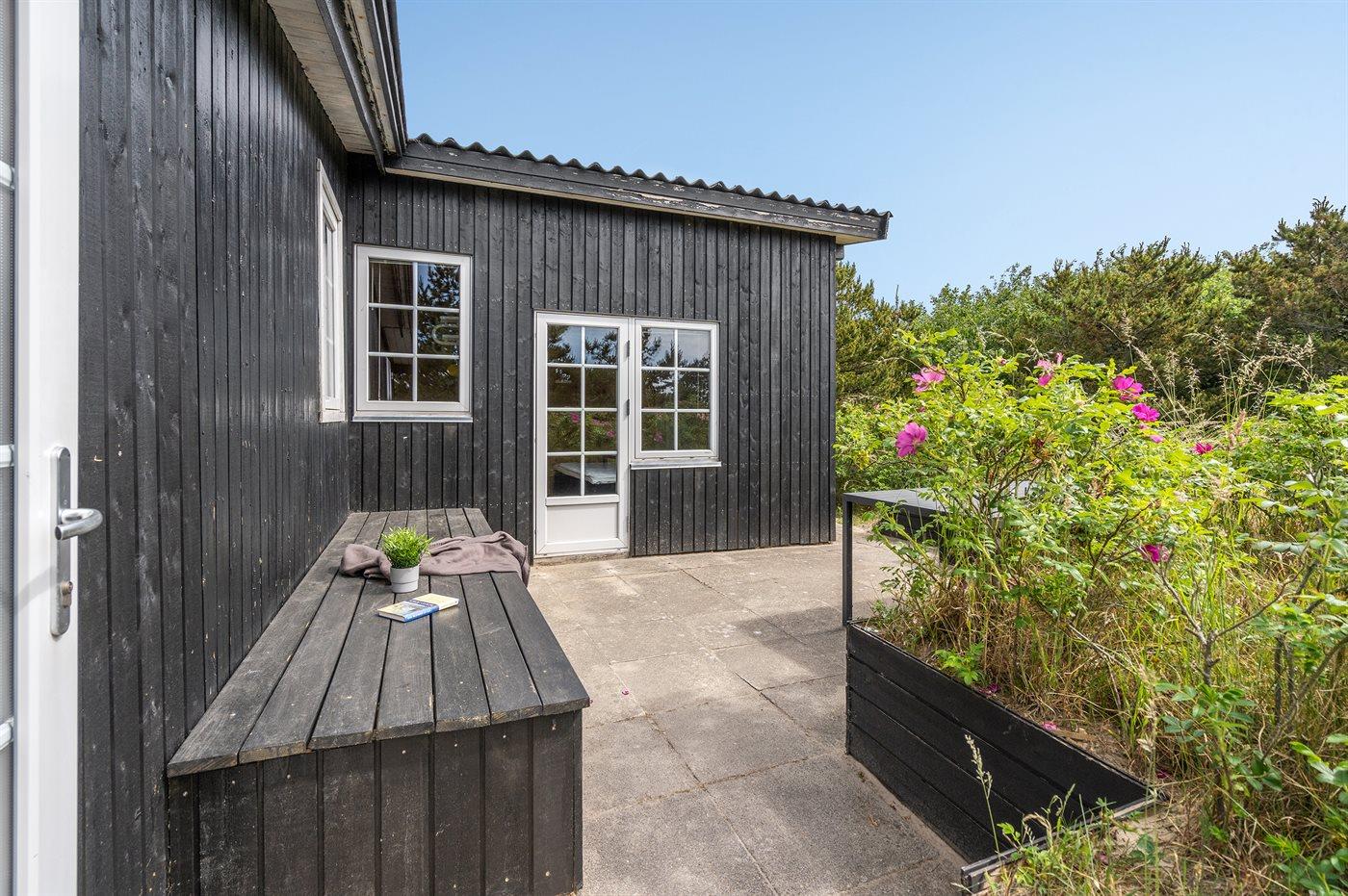Ferieboligen er beliggende på en 1328 m² stor klitgrund. Der er 200 m til havet. Nærmeste forretning er beliggende i en afstand af 1500 m. Til ferieboligen hører 50 m² terrasseareal. Desuden er der 15 m² overdækket terrasse. Der er redskabsrum. Gynge. Sandkasse. Der er installeret stik til opladning af elbil. CEE stik. Parkering ved ferieboligen.