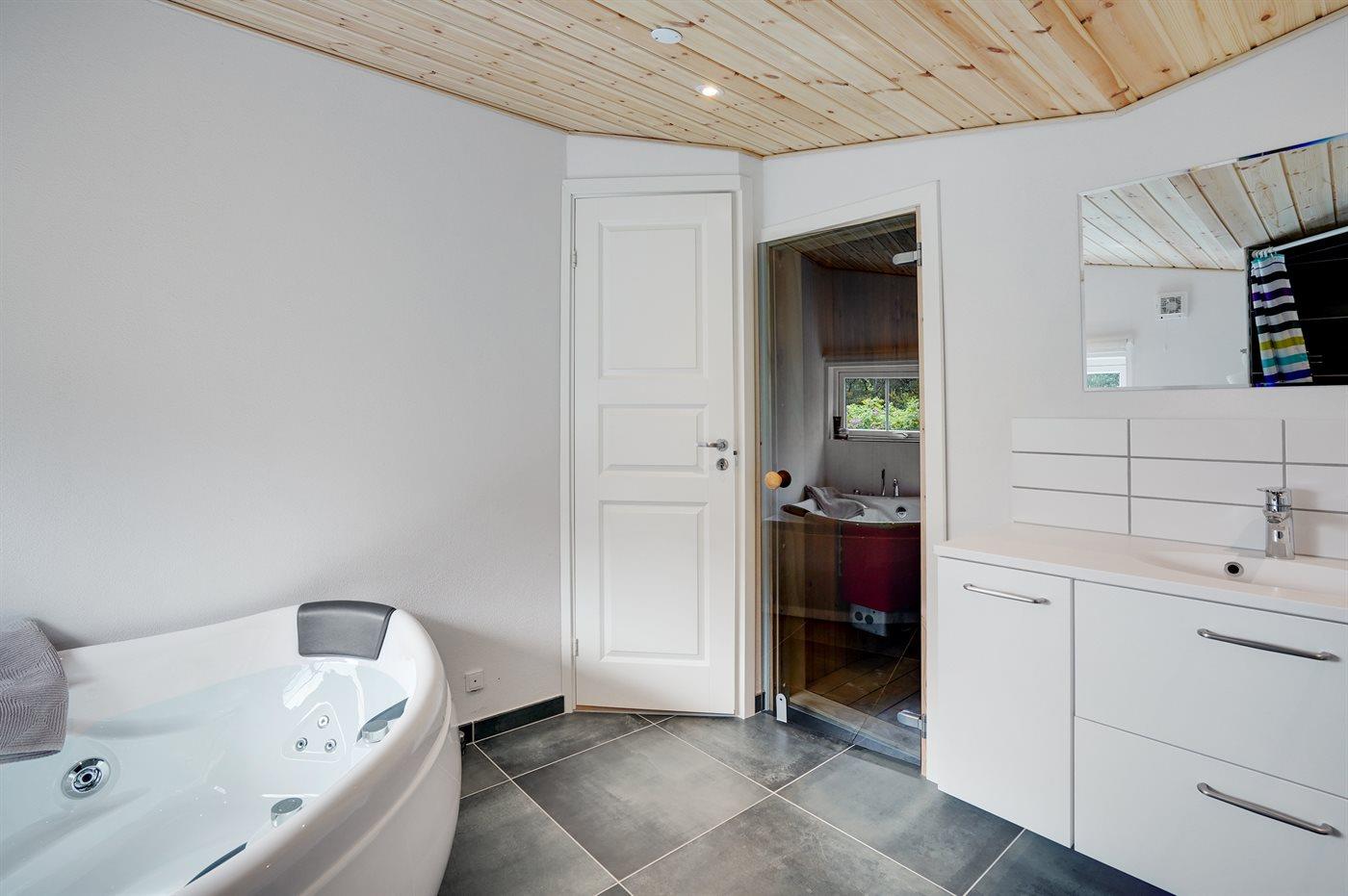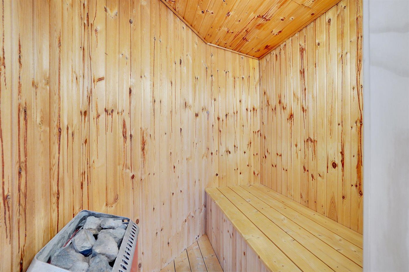 Der er 1 badeværelse med bruseniche og 2 toiletter, heraf 1 gæstetoilet. Der er gulvvarme på 1 badeværelse. Der er gulvvarme på gæstetoilettet. I saunaen er der mulighed for afslapning.