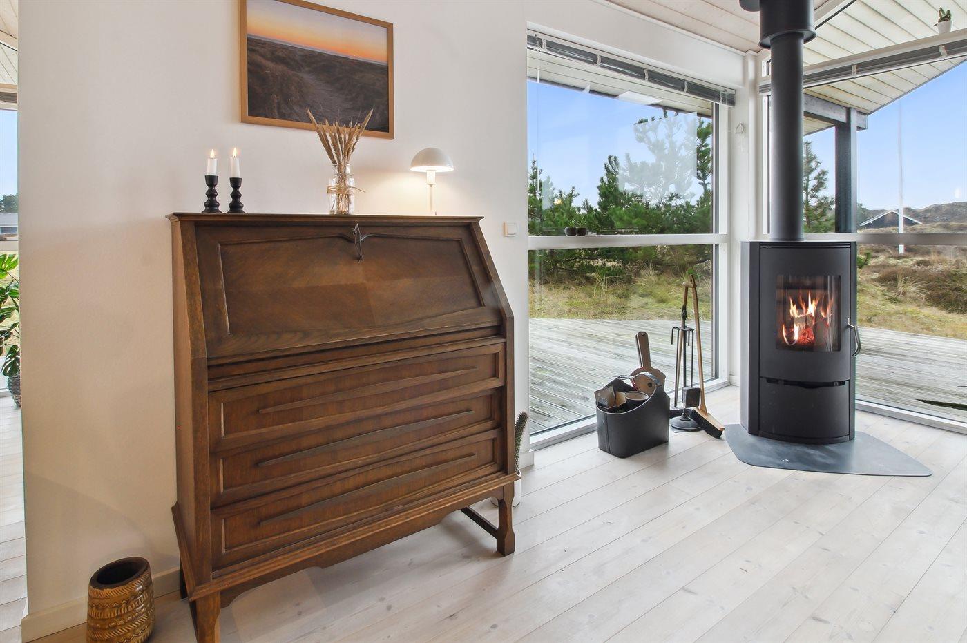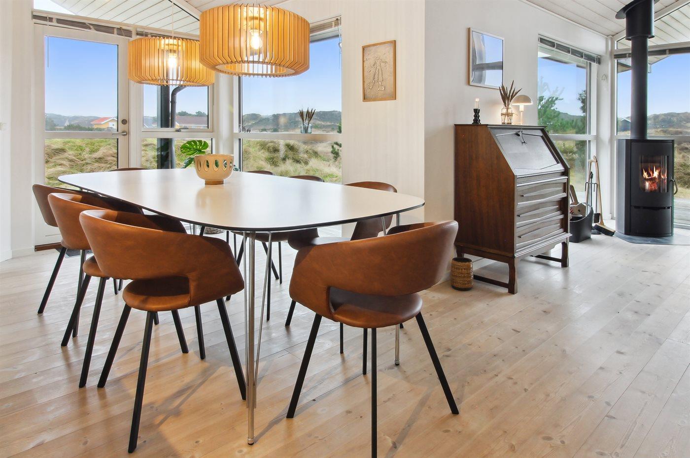 Sommerhuset egner sig til 8 personer samt 1 barn op til 3 år. 2 af sovepladserne er kun egnet til større børn (4-11 år). Ferieboligen er på 102 m² og er bygget i 2012. Det er ikke tilladt at medbringe husdyr. Ferieboligen er udstyret med energibesparende varmepumpe. Ferieboligen har vaskemaskine. Tørretumbler. Frysekapacitet på 76 liter. Der er desuden brændeovn. Til de små er der 1 stk. barnestol.