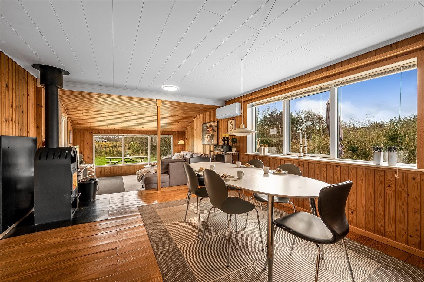 Der er mulighed for at nyde sommeren på den skønne, store terrasse mens børnene gynger på grunden eller nyde efterårets smukke farver mens I spiller spil ved spisebordet og lytter til knitren fra brændeovnen.