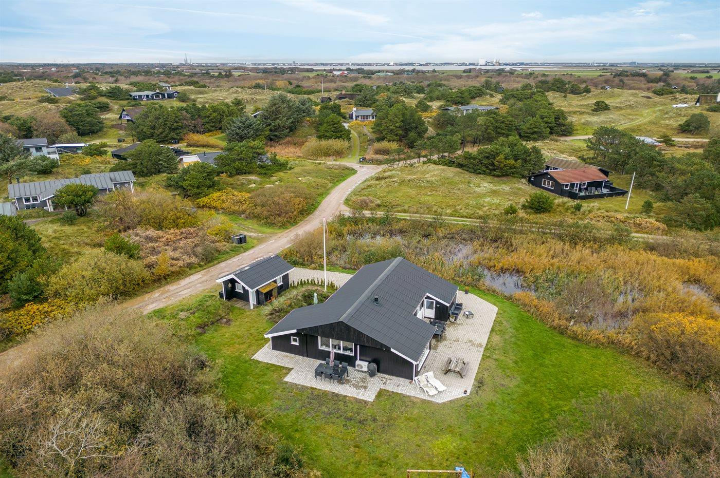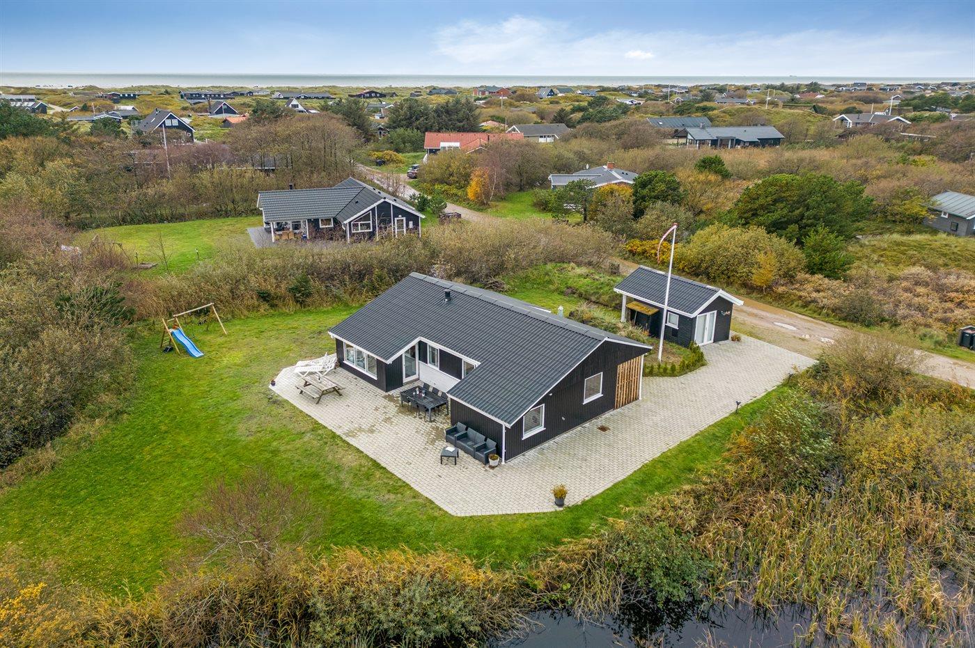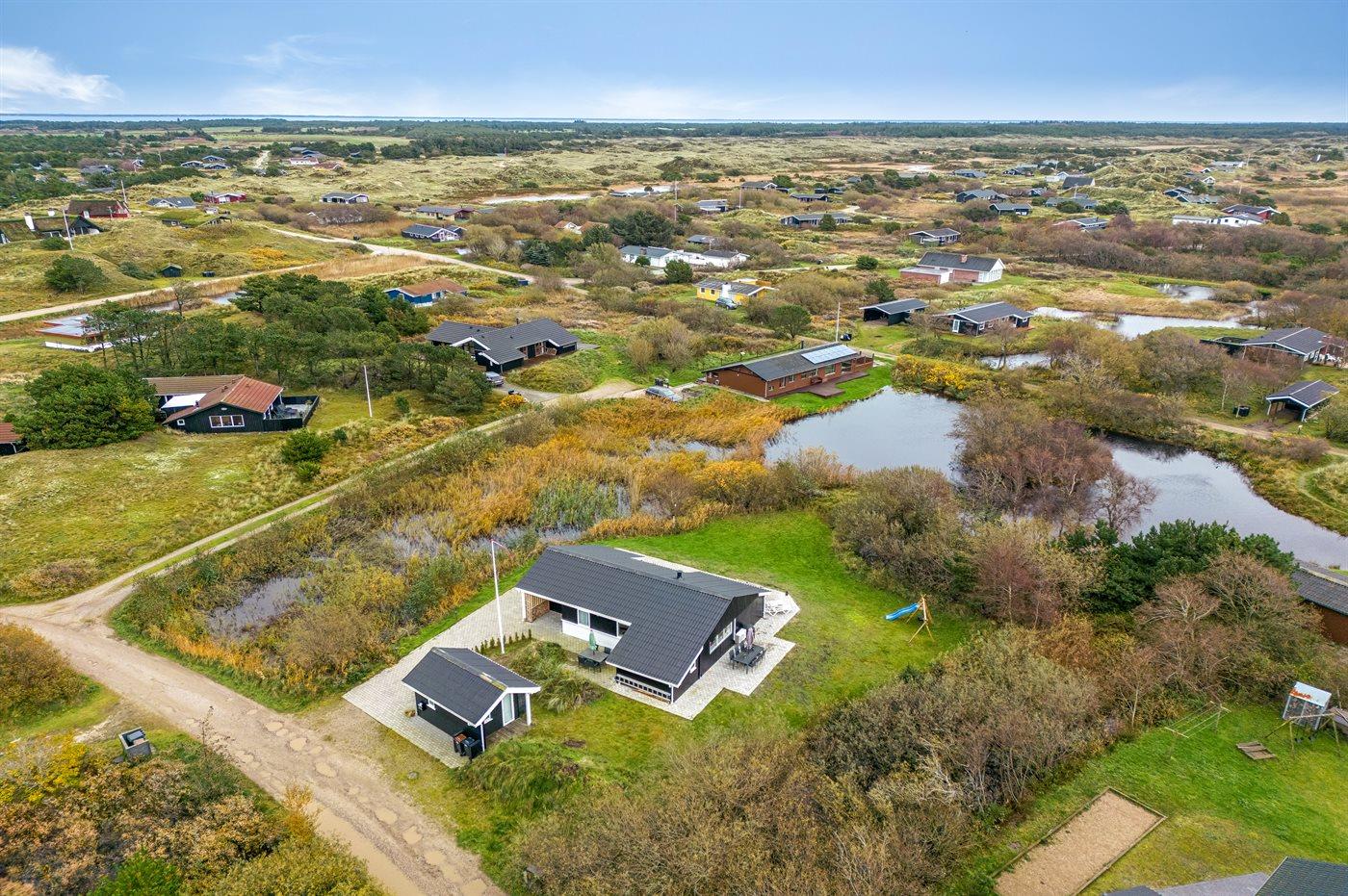 Charmerende sommerhus nær Vesterhavet med egen sø, stor terrasse og børnevenlig have i naturskønt område.