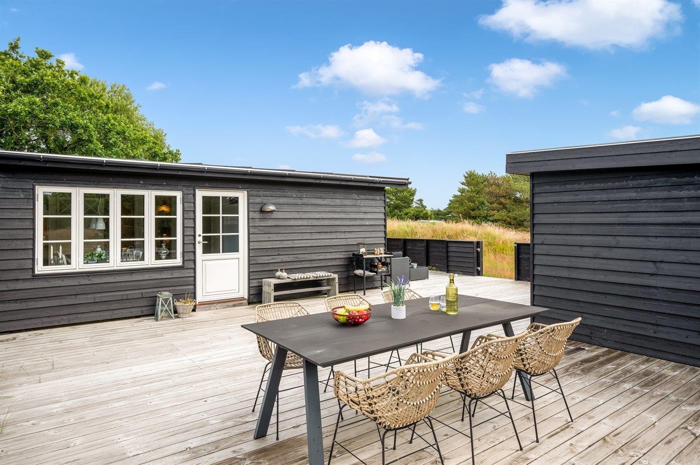 Ferieboligen er beliggende på en 1957 m² stor naturgrund. Der er 800 m til havet. Nærmeste forretning er beliggende i en afstand af 500 m. Desuden er der overdækket terrasse. Udendørs bruser. Parkering ved ferieboligen.