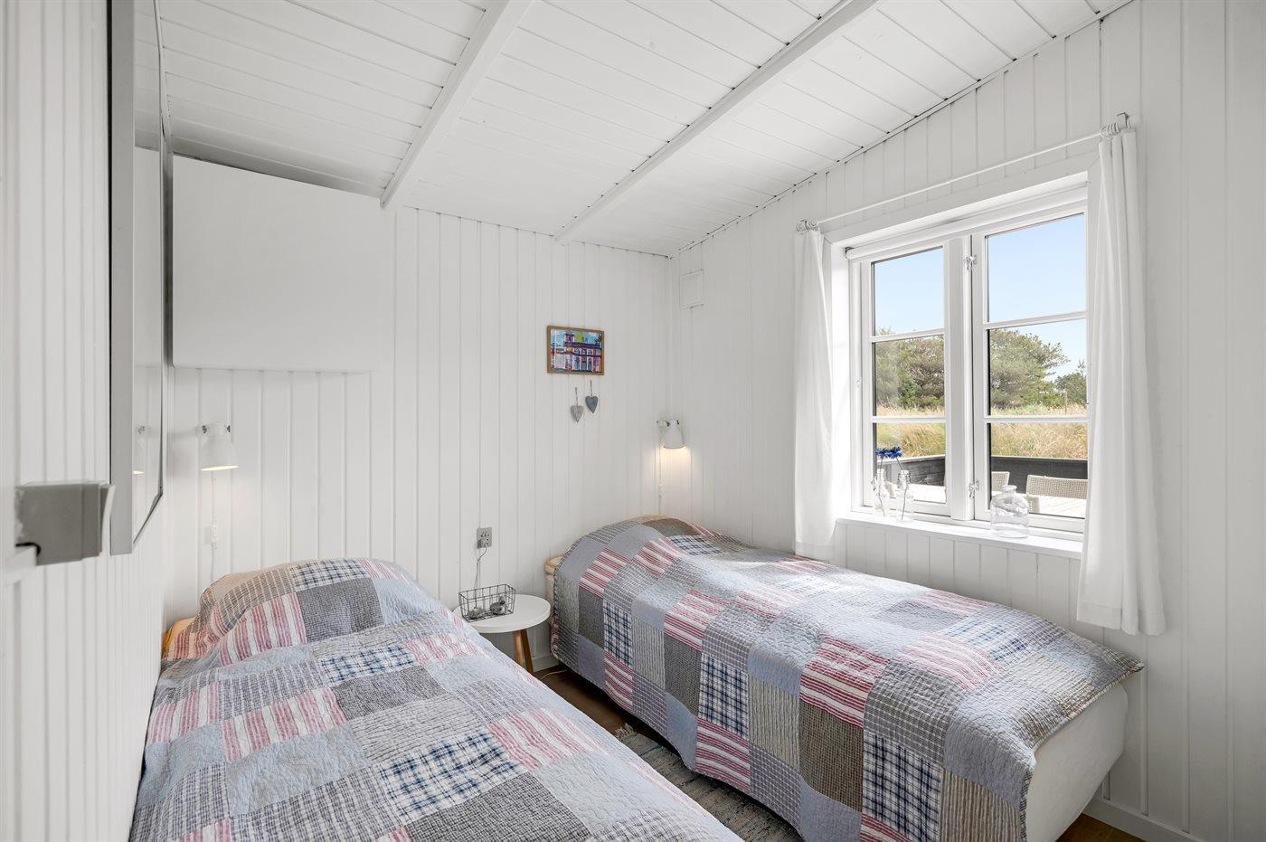 Der er i alt 3 soveværelser. Sovepladserne fordeler sig på: 2 sovepladser i dobbeltseng. 2 sovepladser i enkeltsenge. 2 sovepladser i køjeseng.