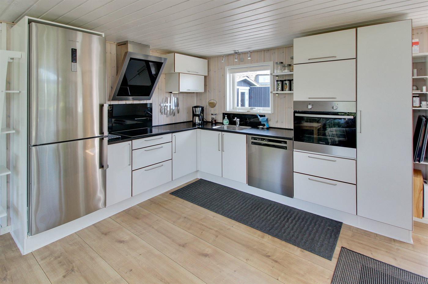 Køkkenet er udstyret med 1 køleskab. Der er 4 keramiske kogeplader, bageovn, mikrobølgeovn samt opvaskemaskine.