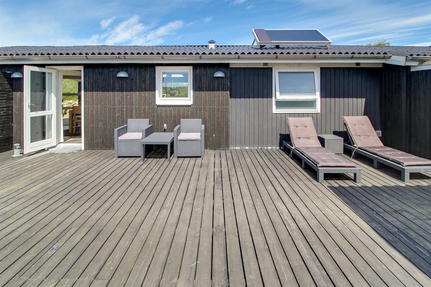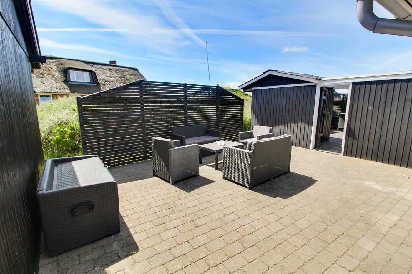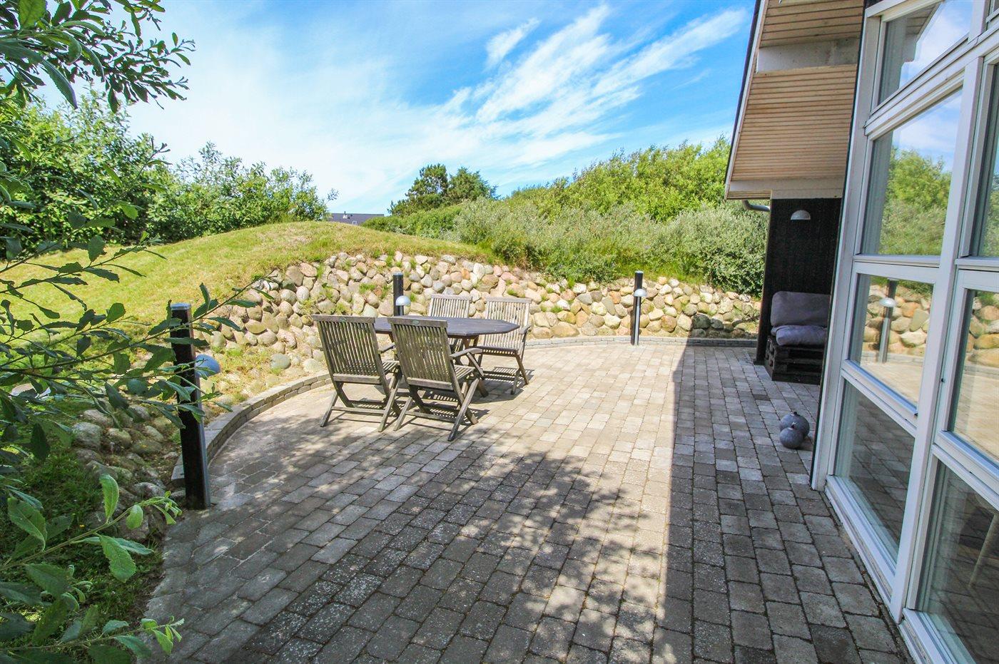 Ferieboligen er beliggende på en 1704 m² stor naturgrund. Der er 500 m til havet. Nærmeste forretning er beliggende i en afstand af 1500 m. Der er carport til rådighed.