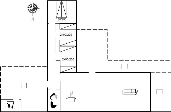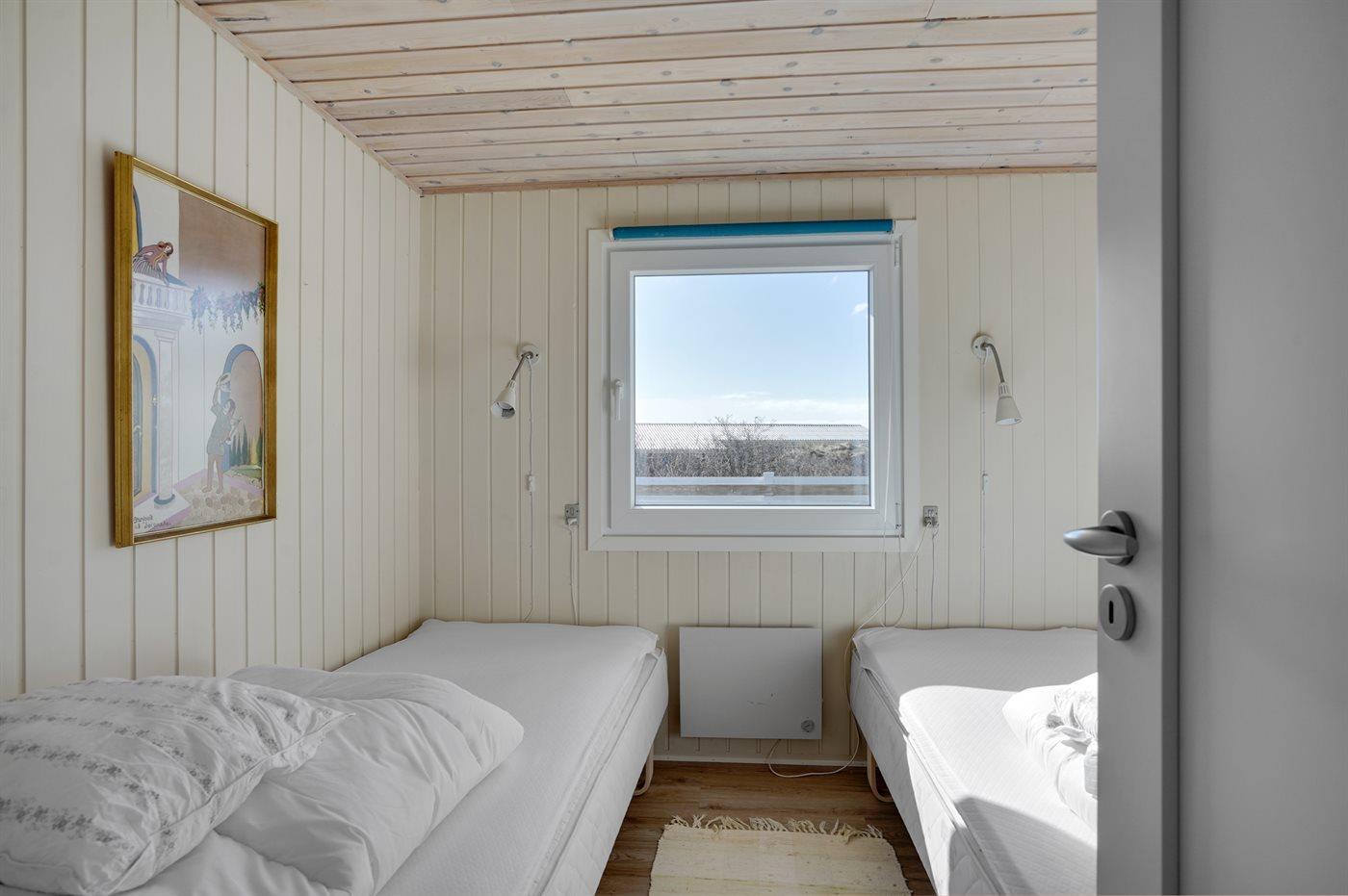 Der er i alt 3 soveværelser. Sovepladserne fordeler sig på: 2 sovepladser i dobbeltseng. 4 sovepladser i enkeltsenge.