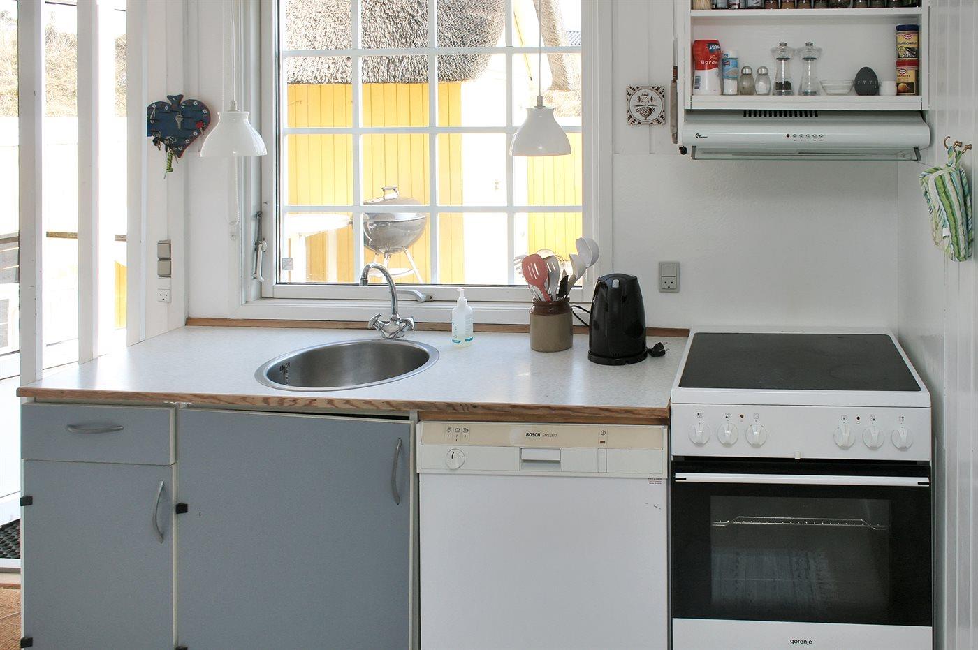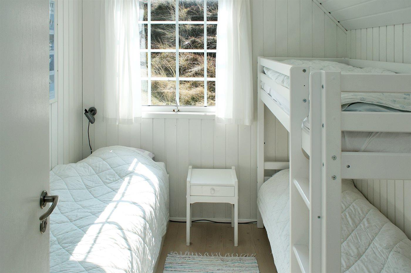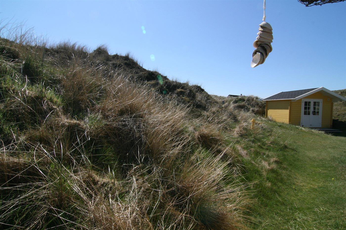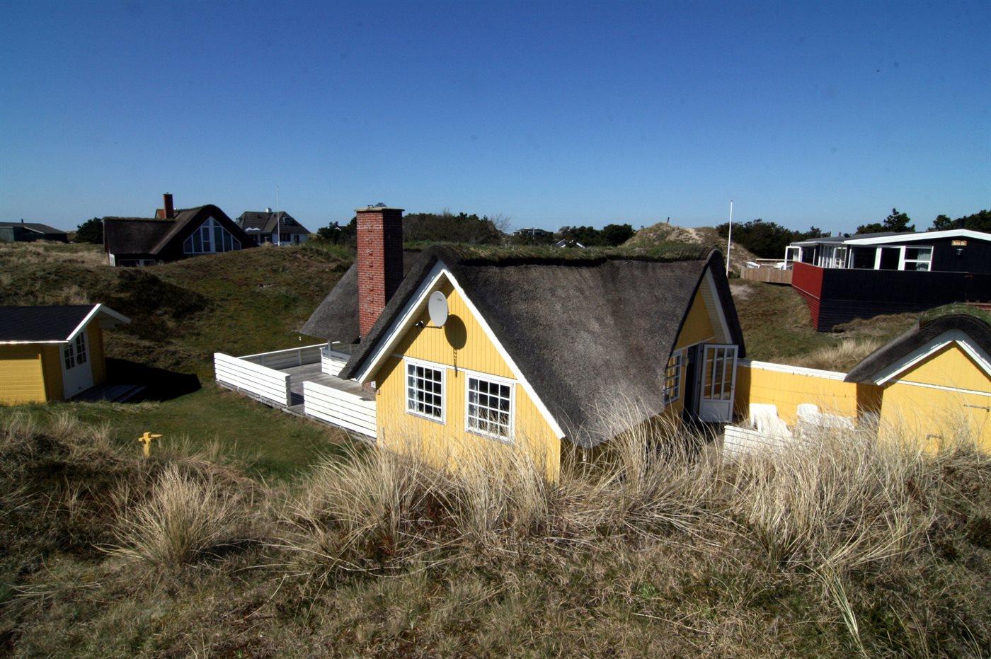 Et dejligt, stråtækt feriehus med rolig beliggenhed i ly af klitten, hvorfra der er havudsigt. Huset er hyggeligt indrettet og har nogle rigtig dejlige terrasser. 3 soverum og plads til 5 personer. Trægulve på værelser, i opholdsrum og køkken. Huset ligger vindbeskyttet på en fantastisk grund i et skønt område og kun 200 m fra stranden. Et "rigtigt" sommerhus med sjæl og charme. Annekset er til privat brug.