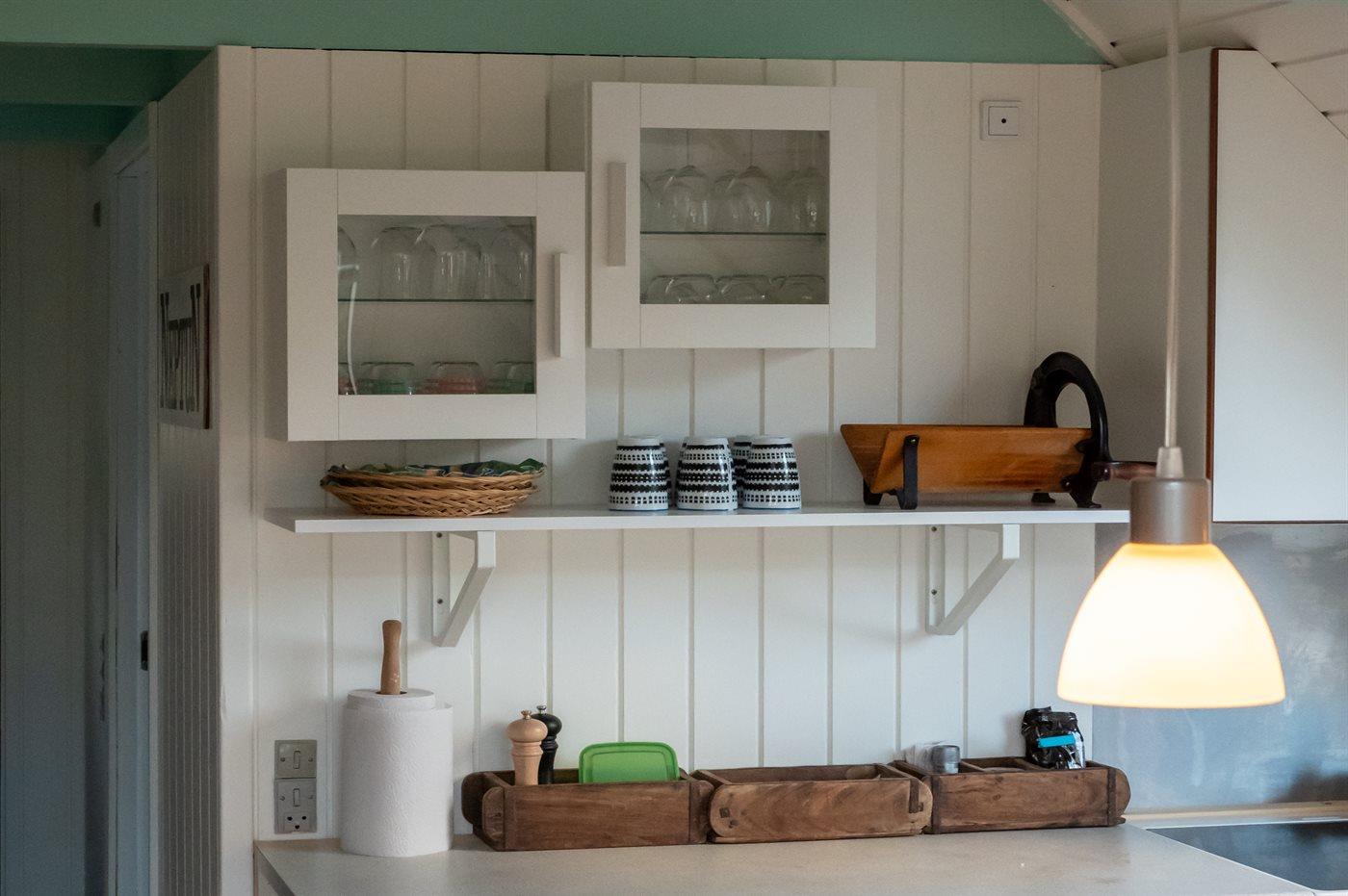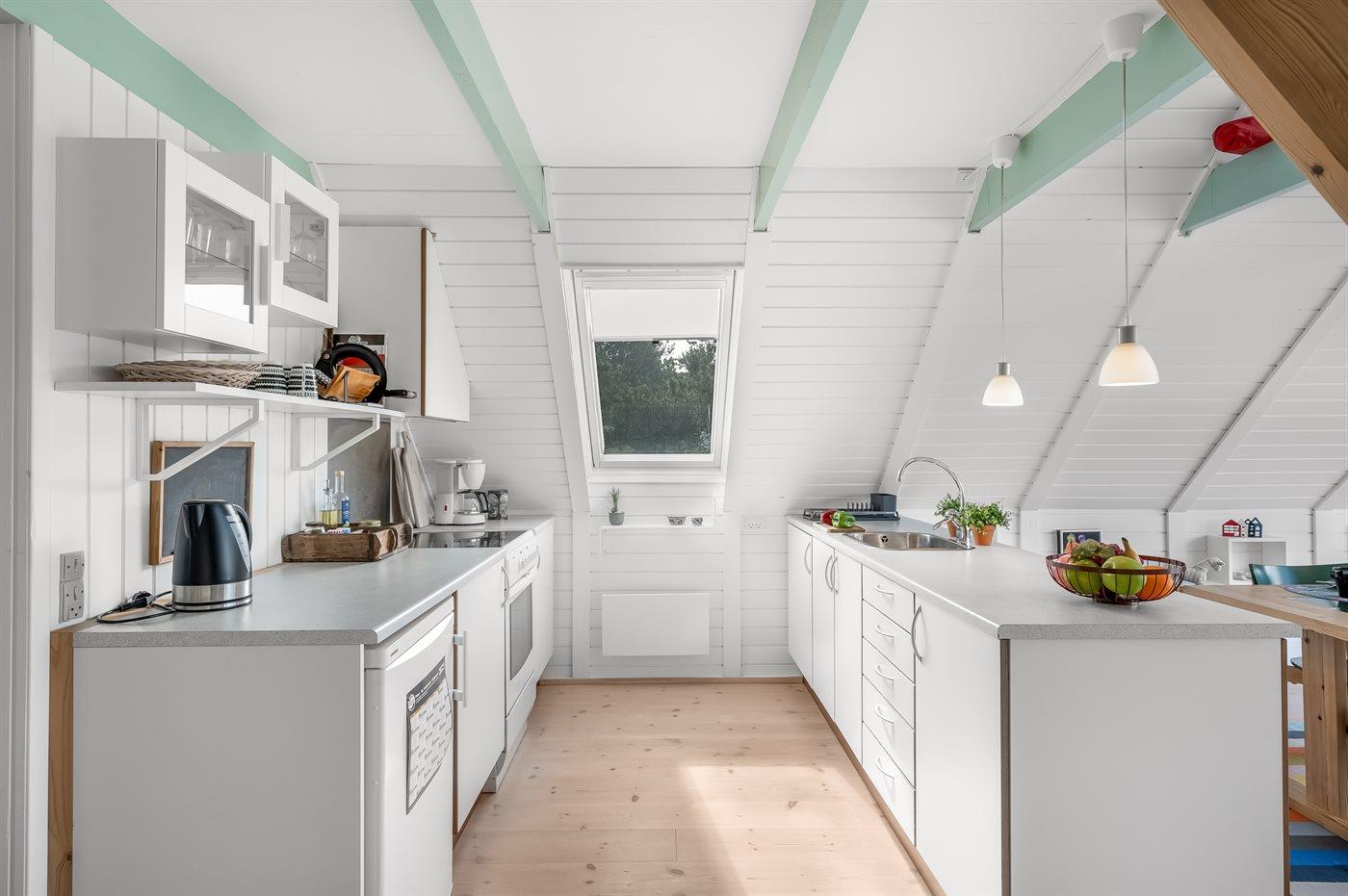 Køkkenet er udstyret med 1 køleskab. Der er 4 keramiske kogeplader, varmluftovn, mikrobølgeovn.