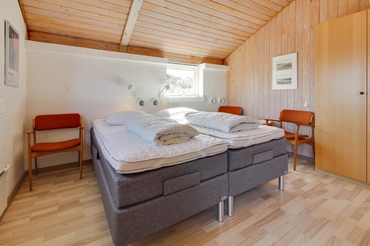Der er i alt 3 soveværelser. Sovepladserne fordeler sig på: 4 sovepladser i dobbeltsenge. 2 sovepladser i enkeltsenge.